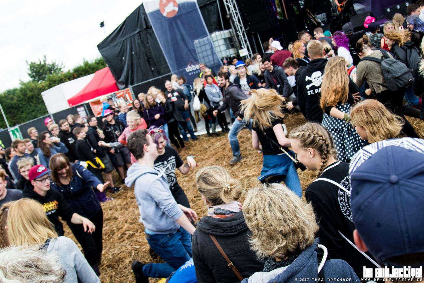 Kurz darauf betreten bereits Talos aus Papenburg die Bühne, um mit deutschsprachigem Hardcore etwas Bewegung in den Matsch zu bringen. Und sie schaffen es tatsächlich ein paar bunt begummistiefelte Gäste weg aus dem Schutz der Bierwägen bis vor die Bühne zu locken.