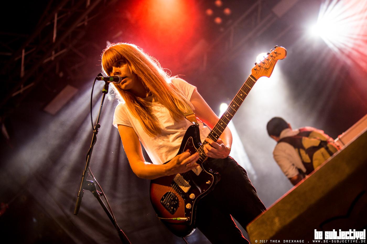 Rasanter Stilwechsel. Giant Rooks betreten nach einer sehr sehr kurzen Umbaupause die Bühne und überraschen zur Freude der beturnbeutelten Hipstermädels mit leichtgängigem Indie-Pop. Ein bisschen was von einer „Ophelia“ ins Mikrofon säuseln und sich dabei durch die Haare wuscheln funktioniert gut und bringt Verzückung in die ersten Reihen. Auch wenn die Musik nicht zwingend für Jedermann und Jederfrau ist, muss man anerkennen, dass die fünf Musiker für ihr wirklich junges Alter einen professionellen und technisch einwandfreien Auftritt abliefern.