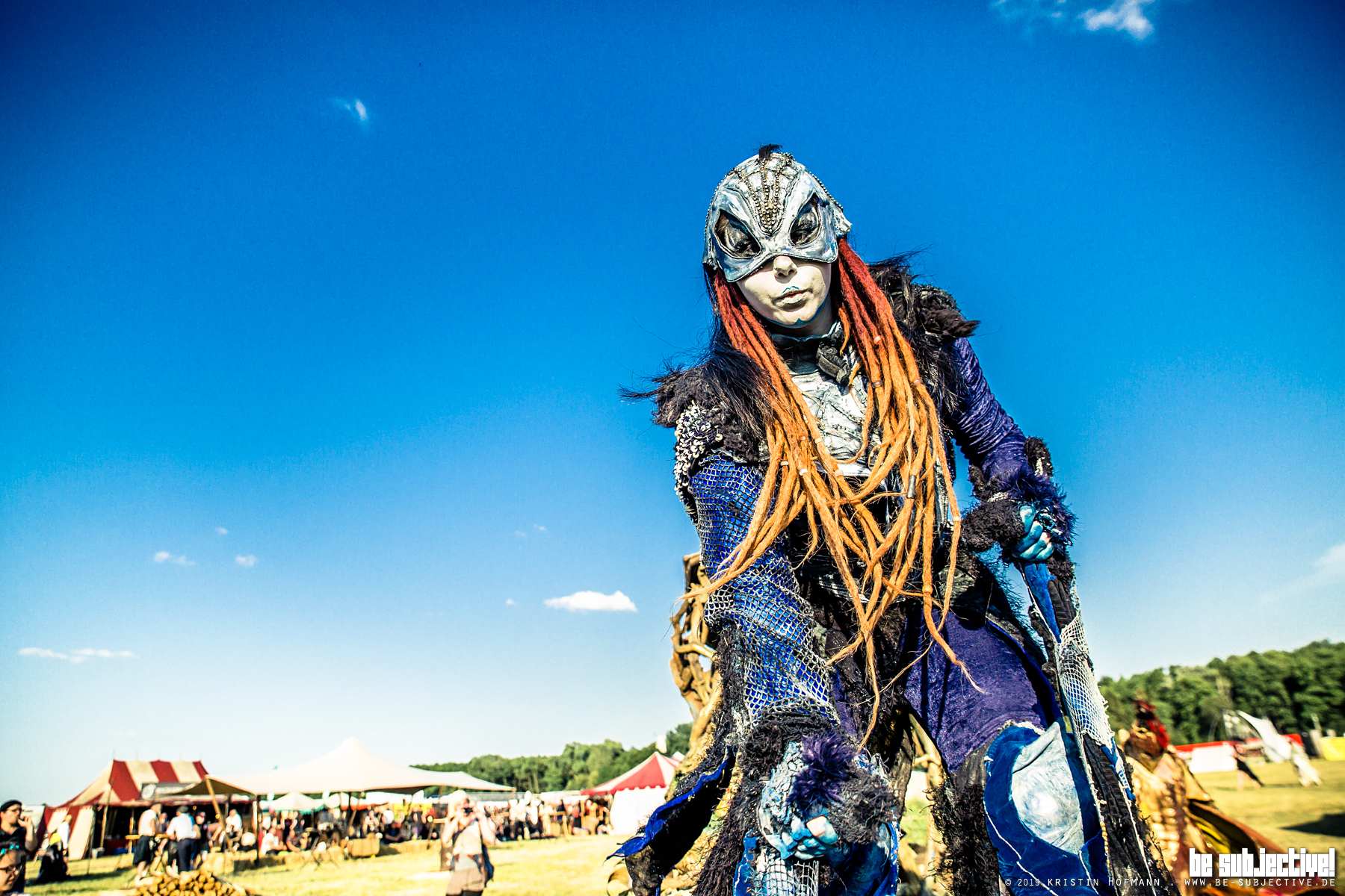 Unscheinbar wirkt der kleine Ort Hoppegarten im Südosten von Berlin an diesem Wochenende. Überall hübsche Häuser, es grünt an jeder Ecke, wenig Verkehr. Umso erstaunter wird man dann als man das riesige Gelände der Galopprennbahn betritt. MPS – Mittelalterlich Phantasie Spectaculum – so weit wie das Auge blicken kann. Das MPS existiert bereits seit 1994 und ist mit bis zu 3000 Teilnehmern das weltweit größte reisende Mittelalterfestival. Die Galopprennbahn erstrahlt bei gefühlten 35 Grad in der Sonne wie eine unendlich große Fantasielandschaft.