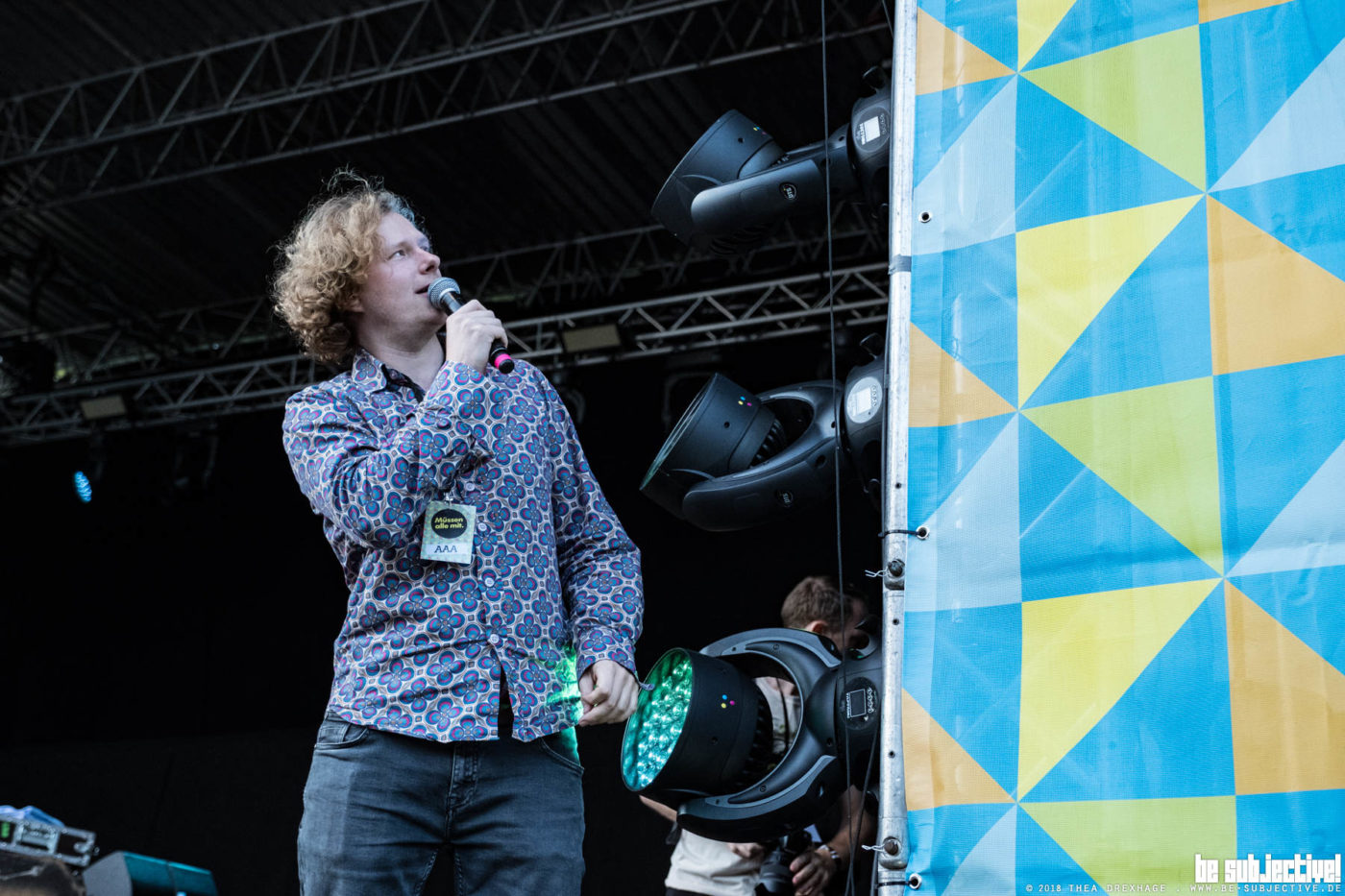 Mit Goldroger AUS KÖLN weht bereits kurze Zeit später ein ganz anderer Wind. Lebendiger und deutlich weniger verkatert liefert der junge Rapper mit den wahnsinnig cleveren Texten und dem wirklich talentierten Gitarristen, weit abseits dessen, was in Deutschland unter Rap verstanden wird, eine ordentliche Show die den ein oder anderen Besucher von den Liegestühlen vor die Bühne lockt.