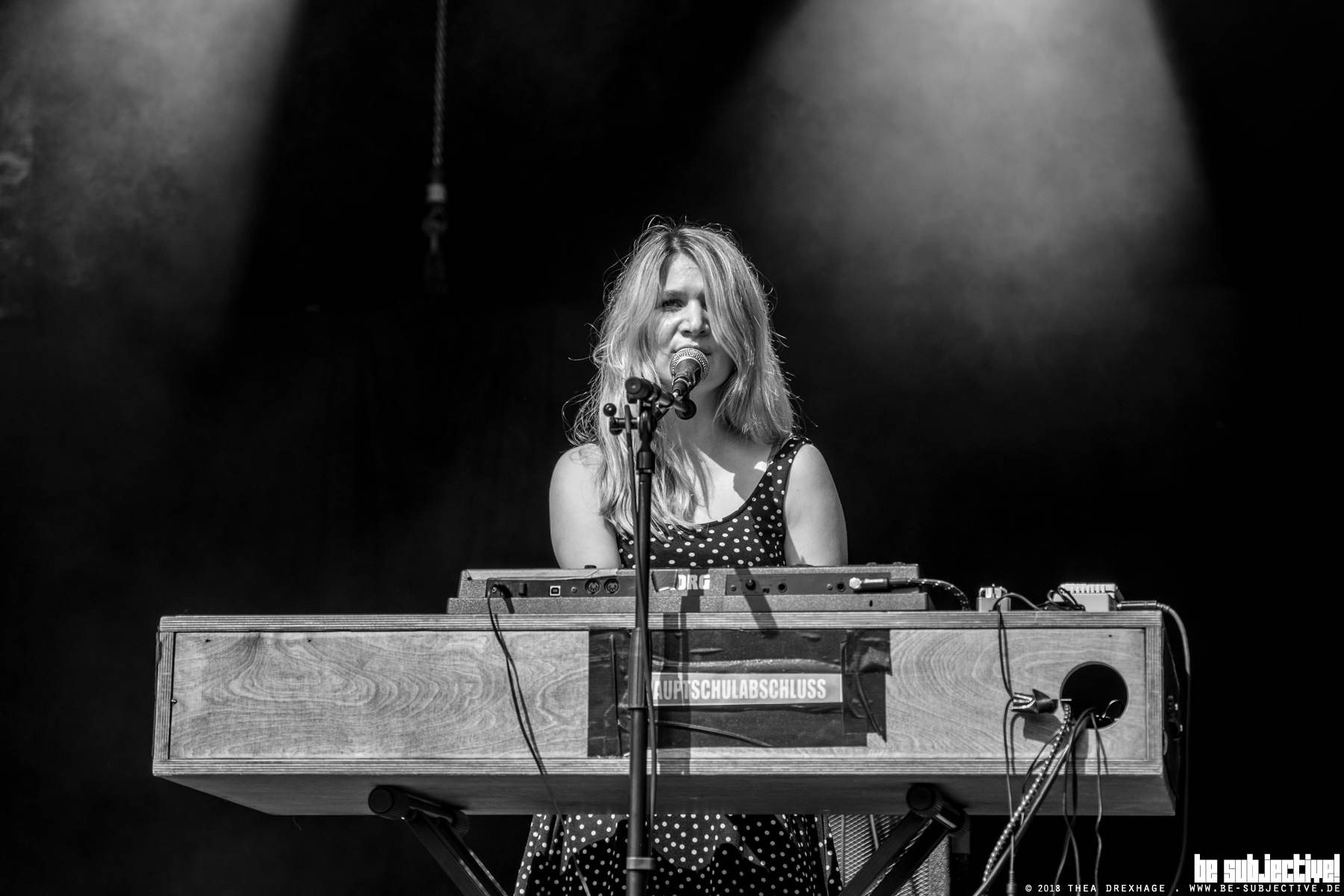 Das musikalische Programm beginnt ebenfalls eher gemächlich mit den orgelndenAugsburgerInnen von Zimt. Die Songs sind süß, etwas 80er angehaucht und leider nur wenig abwechslungsreich. Vor der Bühne herrscht nur wenig Treiben. Die Gäste machen es sich lieber mit der unaufdringlichen Hintergrundbeschallung auf Decken und Liegestühlen in der Sonne gemütlich.