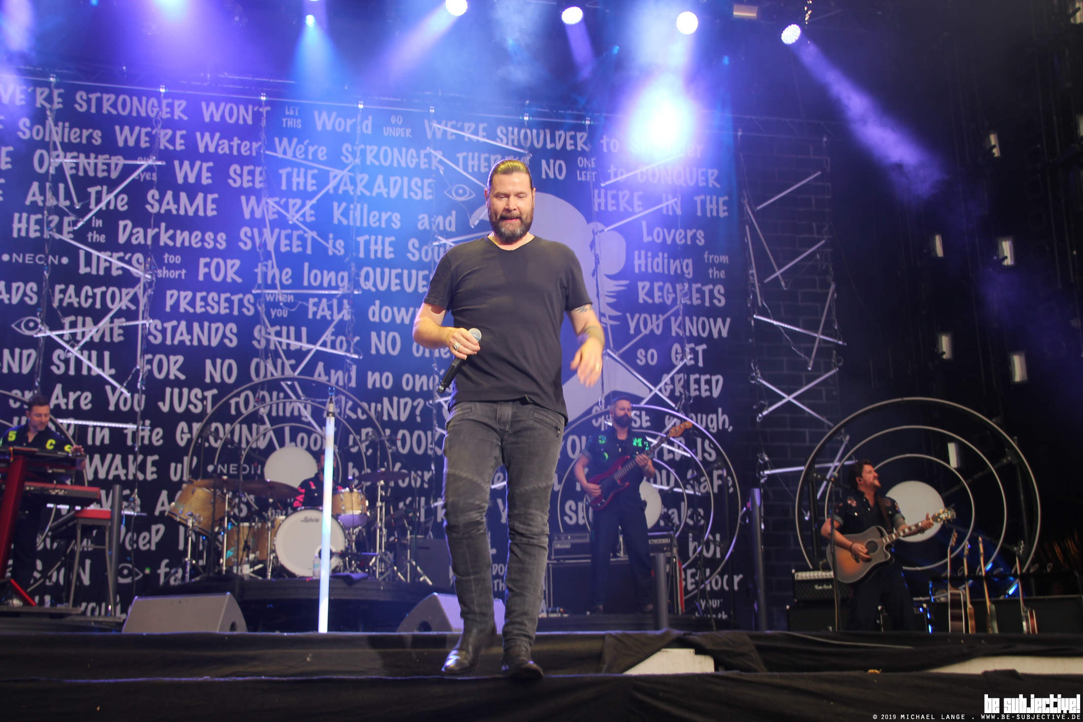 BenjRose macht den Opener an diesem Tage. Sie sind regaltechnisch eher weiter unten anzusiedeln, aber das wird nicht so bleiben. BenjRose ist die Band um den Sänger Benjamin Rose aus Köln und die Jungs haben als Support von Pink, Seed, Hurts, Philipp Poisel, Deichkind oder auf der Westernhagen-Tournee 2015 schon einige Vorschusslorbeeren einheimsen können. Ihre aktuelle Singleauskopplung „Where do we go“ ist durchaus hörenswert und „No Catastrophe“. Am 13.06.19 bringen sie ihr Album raus. Läuft bei den Kölnern.
