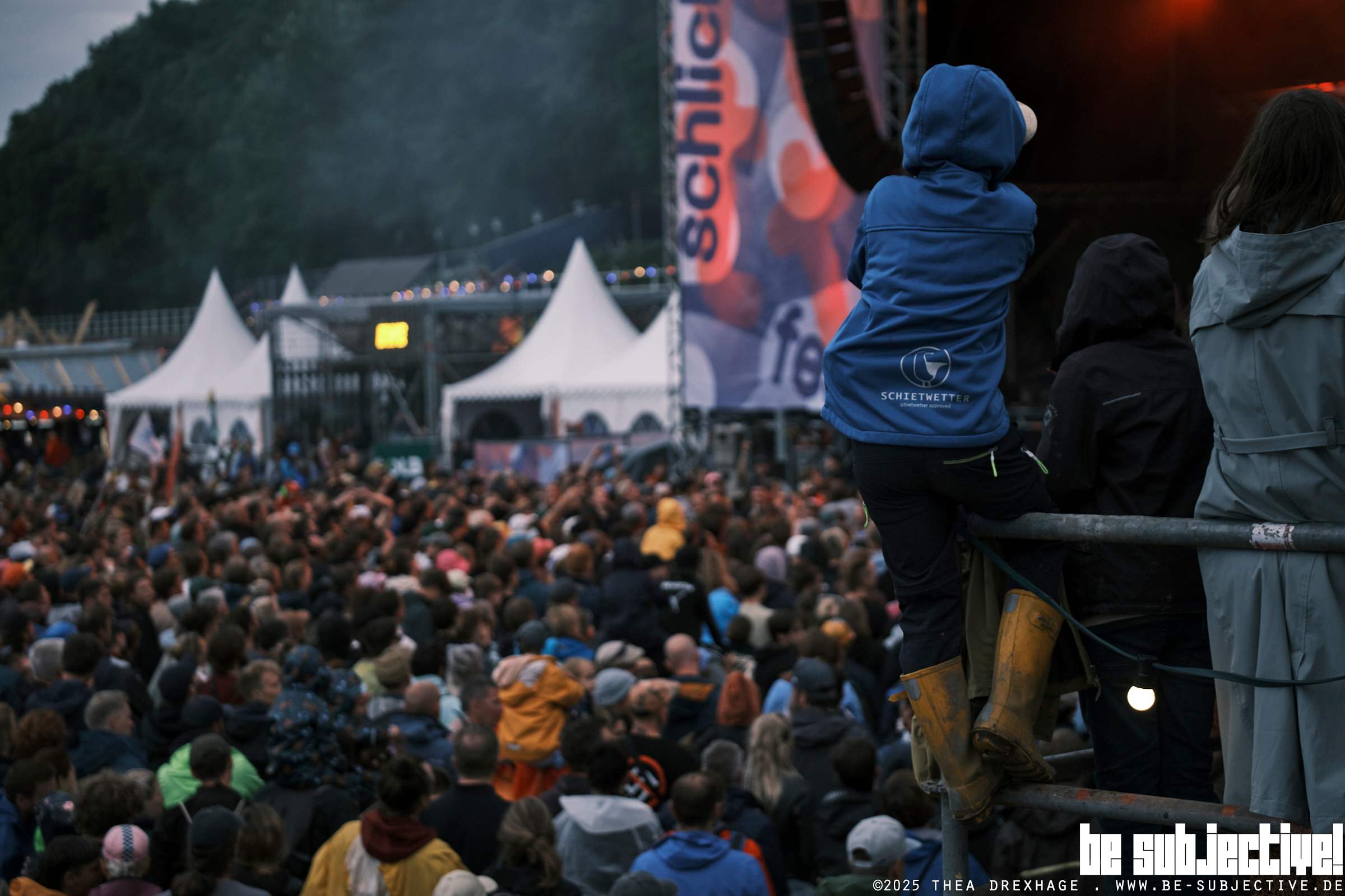 Die Donots haben sich angeblich selbst eingeladen. Das wurde auf jeden Fall Zeit. Die Band hat ja gefühlt schon jedes Festival der Republik zum Beben gebracht. Und ganz egal ob man die Musik der Band aus Ibbenbühren mag oder nicht: sie kriegen jede*n um den kleinen Finger gewickelt, da stört es auch niemanden, dass es von oben noch einmal so richtig, richtig eklig nass wird. Ingo weiß zu motivieren und sich in die Gunst der Menge zu quasseln – und jedes warme Wort über die Besonderheit des WES kauft man ihm ab und die Nostalgie setzt ein. Auch, wenn das Line-Up in diesem Jahr nicht für jede*n war, wird spätestens bei den letzten chorgleichen Tönen von So long klar: das war das Watt En Schlick 2025, allein hierfür hat es sich gelohnt. Allein für so einen Moment kommen wir im nächsten Jahr wieder.