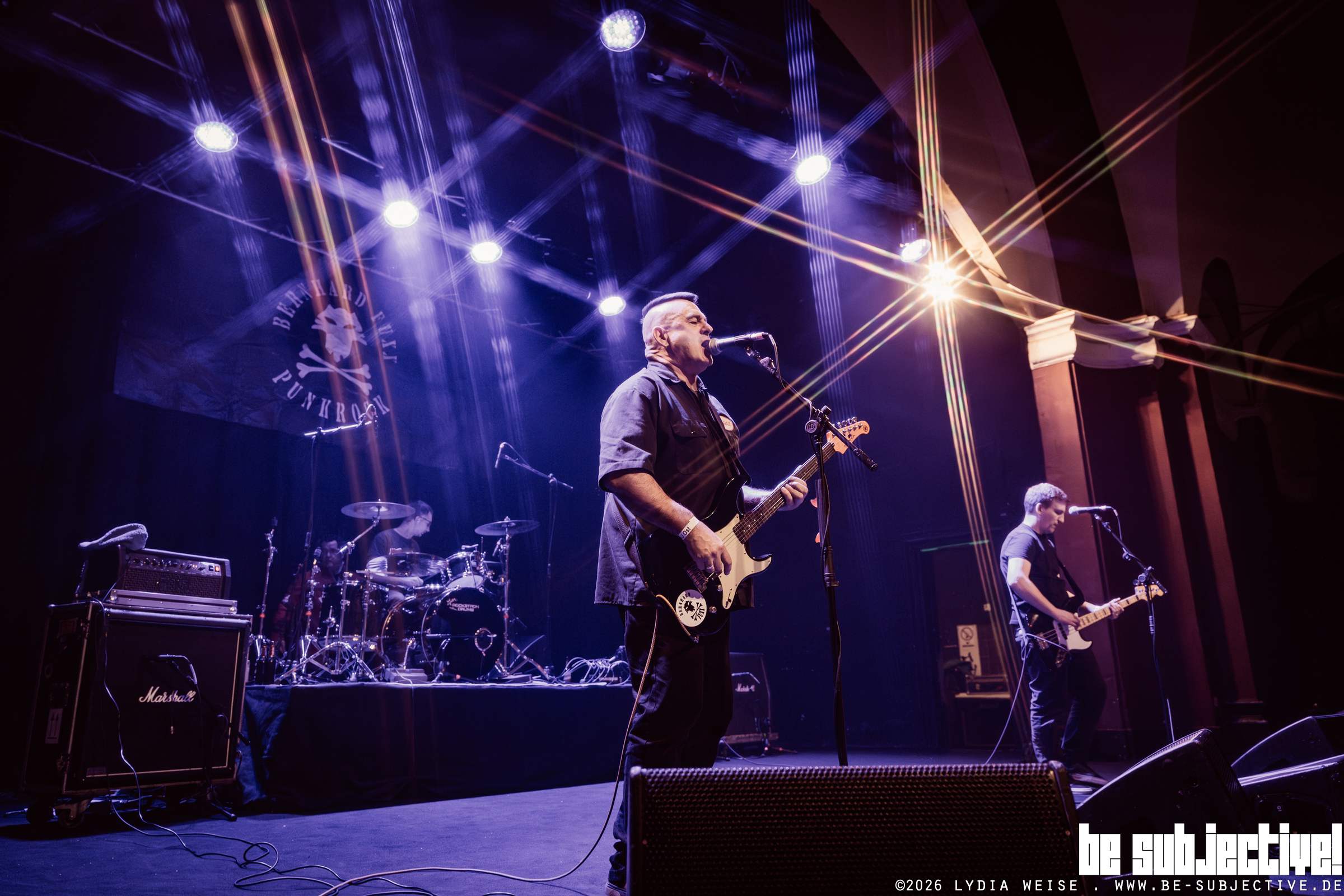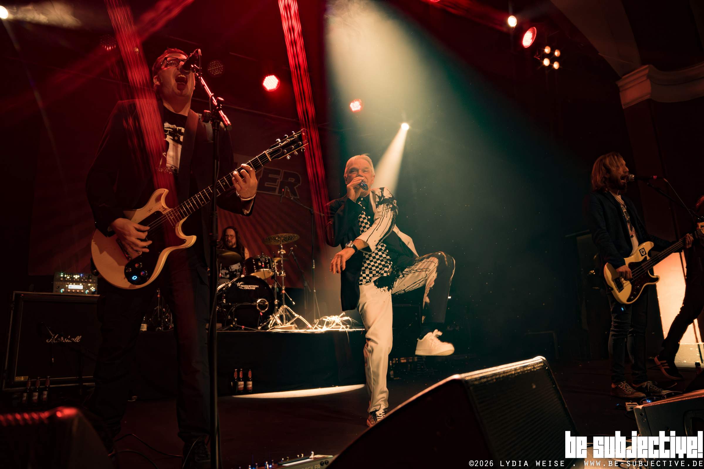 Mit Bernhard Fuxx verschiebt sich die Stimmung hörbar Richtung Mitsingen. Für viele im Publikum hat der Auftritt zusätzlichen Wert, denn es ist die einzige Show der Band in diesem Jahr im Osten. Gleichzeitig schwingt Geschichte mit: Das Projekt stammt vom ehemaligen Sänger von Fucking Faces. Die Songs wirken dadurch nicht nostalgisch, sondern vertraut. Große Teile des Saals tragen die Refrains sicher mit, und der Abstand zur Bühne schrumpft merklich – eher Beteiligung als Beobachtung.