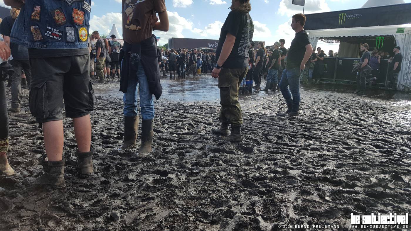 Das Wetter hielt am Donnerstag nicht, was es tagsüber so versprach. Zum Ende von Whitesnake kam ein ordentlicher Schutt runter, der dann auch Wege wieder verschlimmerte und auch während Iron Maiden nie ganz aufhörte. Aber wer 2015 in Wacken war, der wird nur gelangweilt mit den Schultern zucken.
