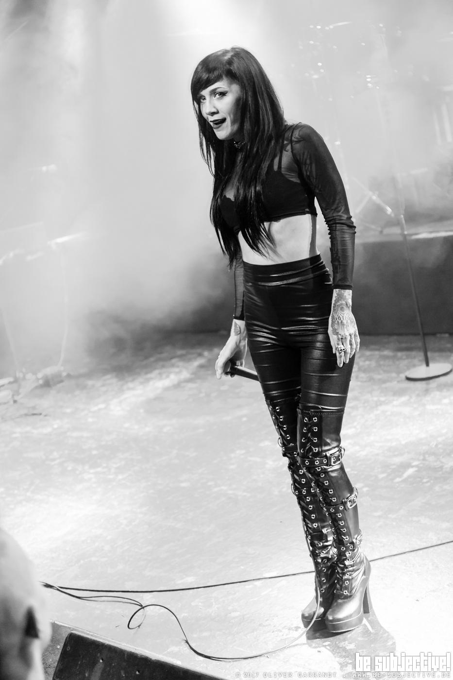 …fordert sie stets das Publikum auf näherzukommen. Auf Applaus braucht sie nicht zu warten. Langsam strömen weitere Gäste herein. Wer bereits Spotify geöffnet und ihren Namen eingegeben hat, der weiß dass Nyxx noch nicht allzu viele Tracks auf dem Markt hat. Doch diese präsentiert sie mit ganzer Seele. Bei ihrer 2013 erschienenen Single „Blindsided“ geht dann leider der Gesang im stark dröhnenden Sound etwas unter. Doch Nyxx selbst gibt sich professionell und absolviert ihre zweite Show überhaupt in Europa (zuvor Hannover 😉 mit mehr als nur Bravour. Der Mund bleibt offen stehen, der Applaus ist laut und gerechtfertigt. Um es mit Nyxx Worten zu sagen: