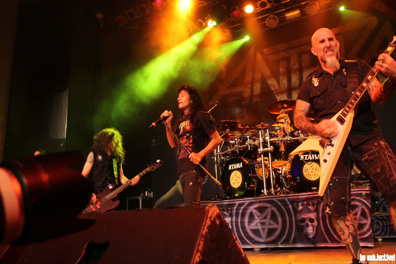 Wenn draussen 30 Grad sind, dann sind nach der Vorband im Capitol gefühlte 45 Grad. Zeit den Elektrolythaushalt aufzufüllen. Schnell das eine oder andere Bier noch ordern, denn Pils-Brand bei Milzbrand geht gar nicht. Anthrax (Milzbrand) gibt es auch schon seit 1981. Sie haben die Hoch-Zeit des Metal mitgestaltet und gehören zu den Big Four neben Metallica, Megadeth und Slayer. In ihrer langen Schaffensphase hat die Formation immer mal wieder personell gewechselt aber Scott Ian Rosenfeld an der Gitarre war immer dabei.