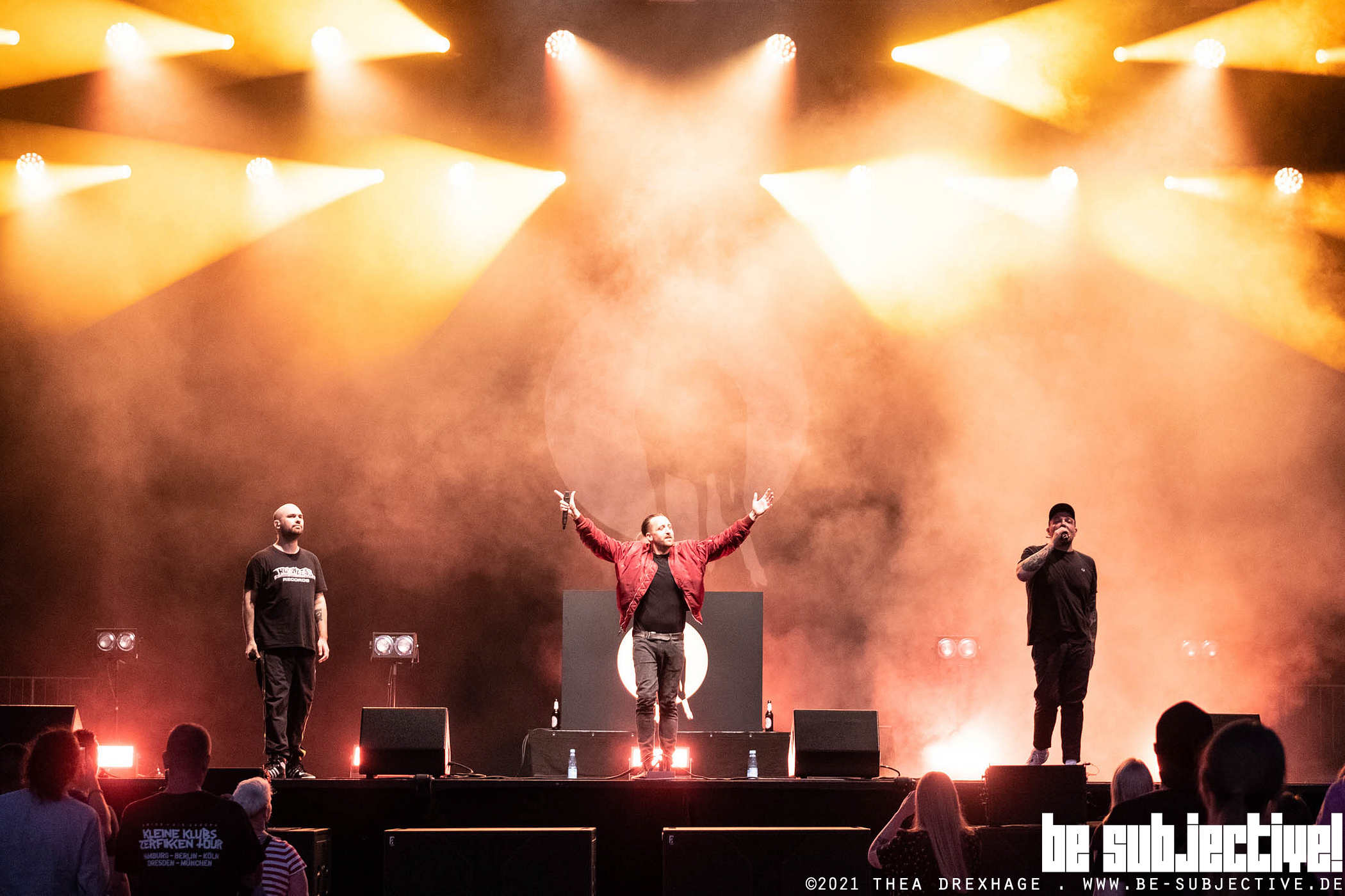 Zu „Pepsi und Basmatireis“ galoppieren die Antilopen auf die Bühne und haben die Crowd sofort im Griff. Ab da geht es rasant und mit gewohntem Witz durch das Set. Das erste Highlight sicherlich „Fick die Uni“ bei welchem DJ Jenny Sharp den Bass so sehr ballern lässt, dass schon fast sowas wie Clubstimmung aufkommt. Das Einzige was fehlt? Der Pogo – aber das ist mit 1,5m Sicherheitsabstand eben schwer.