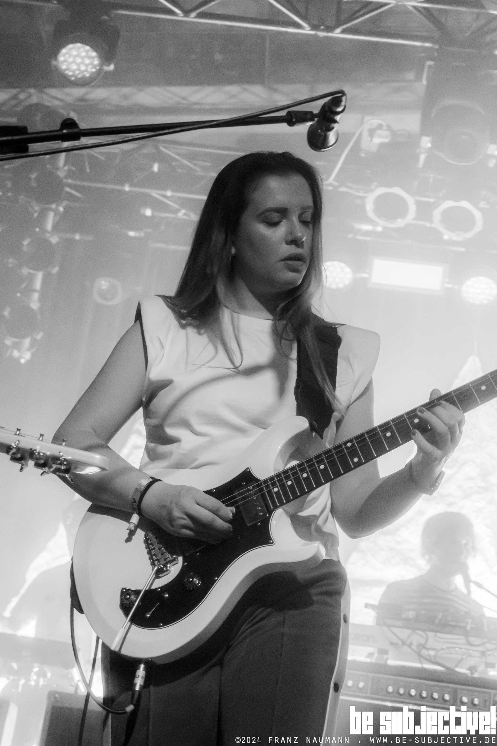 Die musikalische Performance wurde von McKennas talentierten Bandmitglieder*innen Isabel Torres an der Gitarre, Linus Fenton am Bass, Ben Limmer am Schlagzeug und Henry Pearce an den Keys und der Flöte getragen. Zusammen schufen sie eine kraftvolle Klanglandschaft, die den Saal des Astra Kulturhauses erfüllte und das Publikum ordentlich mitreißen konnte. Eingebunden wurde die Band in ein Bühnenbild aus Hügeln. Genauso, wie die goldene Glitzer-Gitarre, erinnerte das Setup stark an die Schallplatte des neuen Albums, die in einer exklusiven Version mit einem Metalldetektor Cover, Sand und versteckter Bonus Flexi-Disc daher kommt.