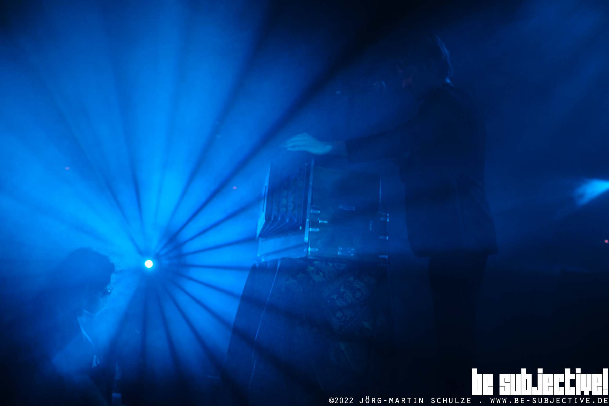 Schillings Gesang wird begleitet von zwei Gitarren, einem Klavier und einem Schlagzeug. Ab und zu spielt er selbst ein Harmonium. Es steht ganz vorne, zwischen ihm und dem Publikum. Vielleicht fühlt er sich so wohler? Für viele BesucherInnen ist es jedenfalls das erste Mal, dass sie ein solches Instrument sehen. Es beginnt schon moll-lastig und düster mit den Liedern „Gera“, „Bitter und Süß“ und „Kalt ist der Abendhauch“. Das vierte Lied ist ein Cover der Ballade „Kinder“ der Liedermacherin und Lyrikerin Bettina Wegner.