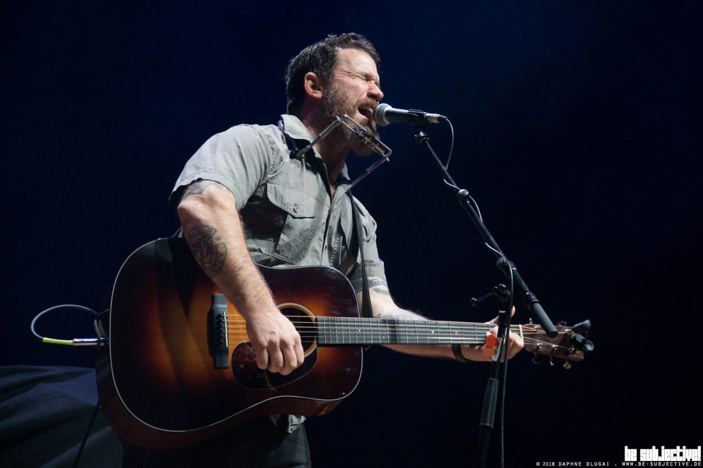 Schlicht, einfach und aufs Wesentliche konzentriert beginnt Chuck Ragan seinen Auftritt. Nur er, seine Gitarre, begleitet vom Keyboard. Die Stimme reicht. Warm, rau, einhüllend und umhüllend. Mehr braucht es nicht.