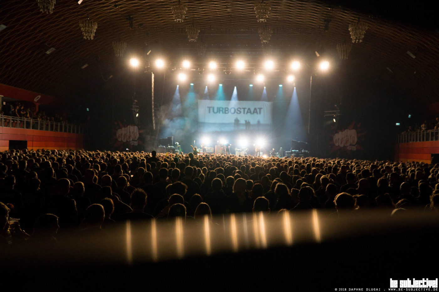 Programmpunkt 2 von 3. Auch hier lassen es sich die Donots nicht nehmen auf der Bühne zu stehen. Anmoderiert werden Turbostaat von Ingo Donot persönlich, die anderen nicken bei seinen Lobeshymnen zustimmend. Dicke Liebe für Flensburg.