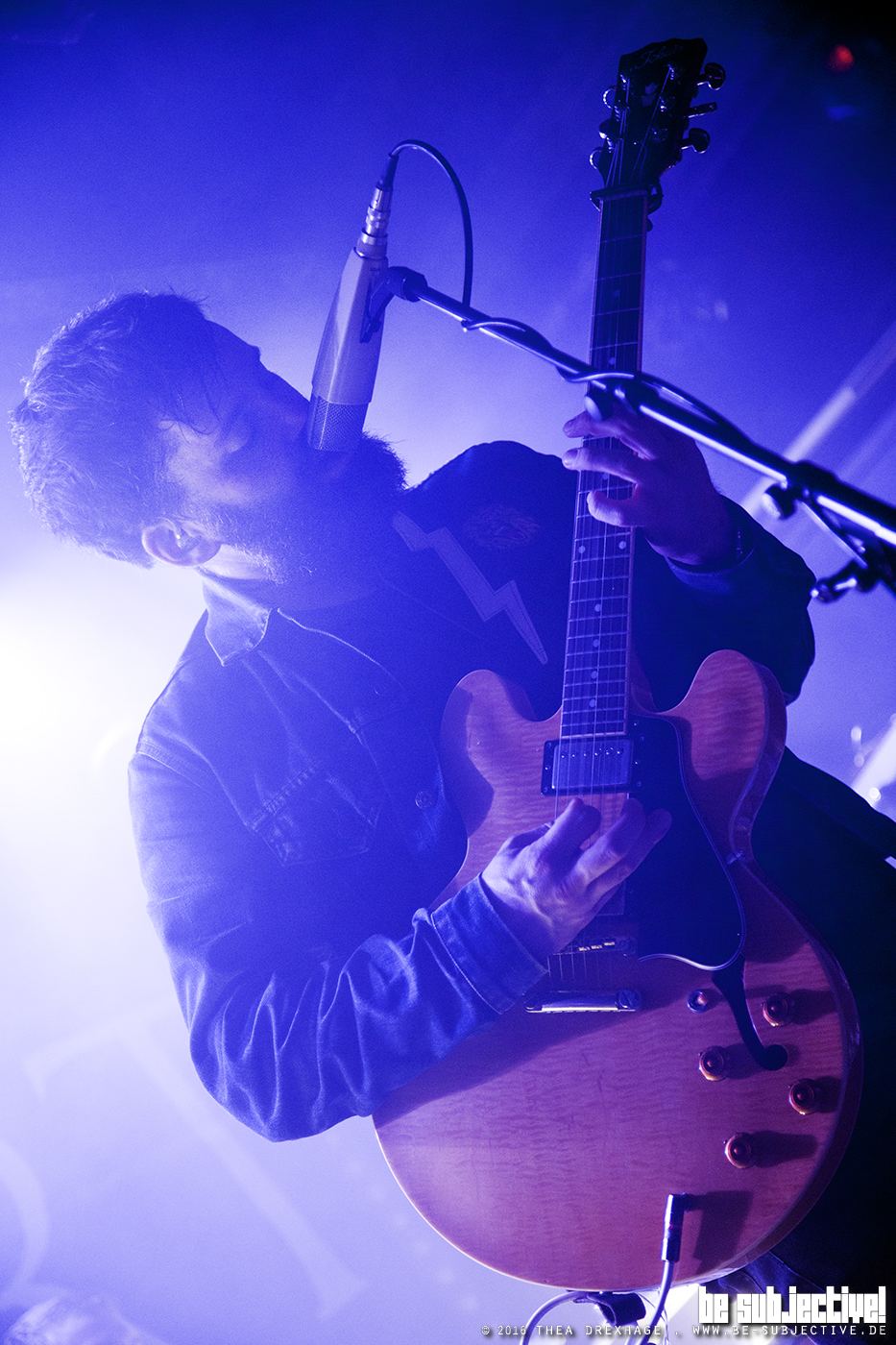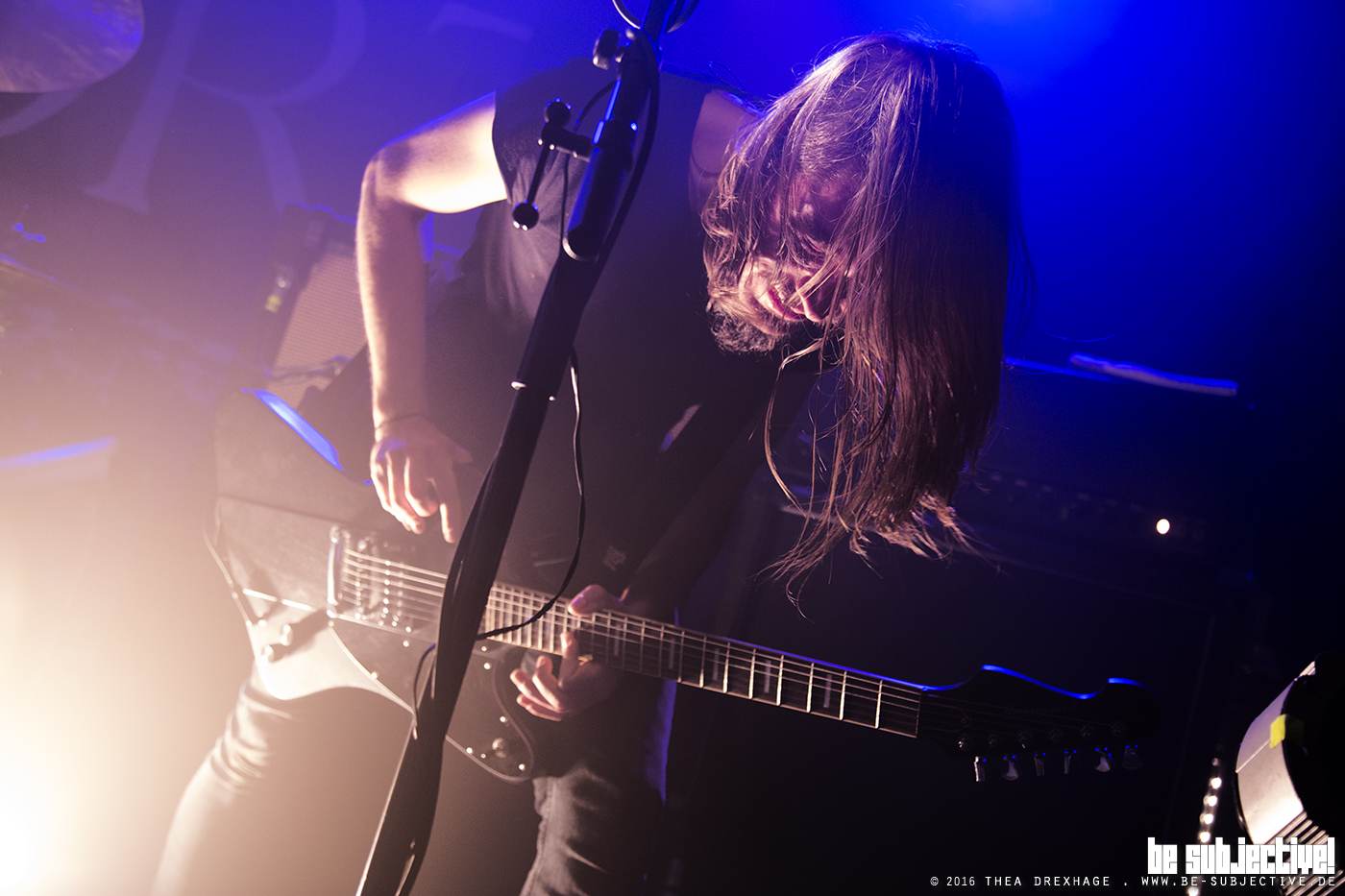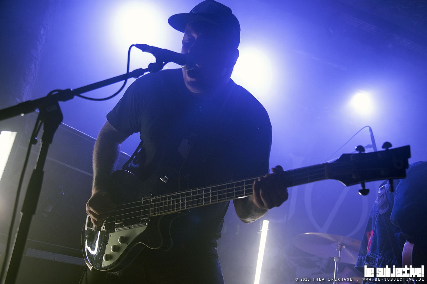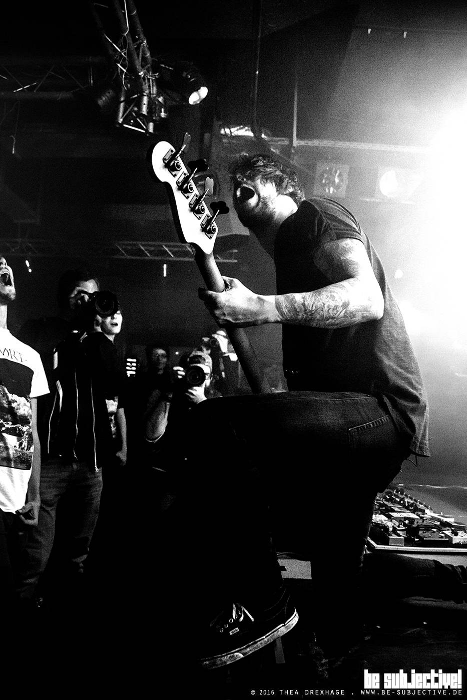 Das Publikum mosht, headbangt und tanzt, jeder wie er mag, bis zum Ende weiter. Die Band bedankt sich zwischendrin bei Publikum, Vorband, Crew und den üblichen Verdächtigen. Bis fast zum Schluss wird nicht viel erzählt. Vor dem Song „Paroli“ wird jedoch einmal deutlich der politische Zeigefinger erhoben. Bassist David fordert dazu auf ein klares Statement gegen AFD und Pegida zu setzen. Es reiche nicht, bei Facebook Beiträge zu teilen und drüber zu schreiben, wie scheiße Frauke Petri sei. Man solle seinen Hintern bewegen und die AFD-Stände in den Städten aufsuchen und leerräumen. Das Publikum sieht das ähnlich und jubelt. „Paroli“ startet. „Haltet Stand, haltet Stand.