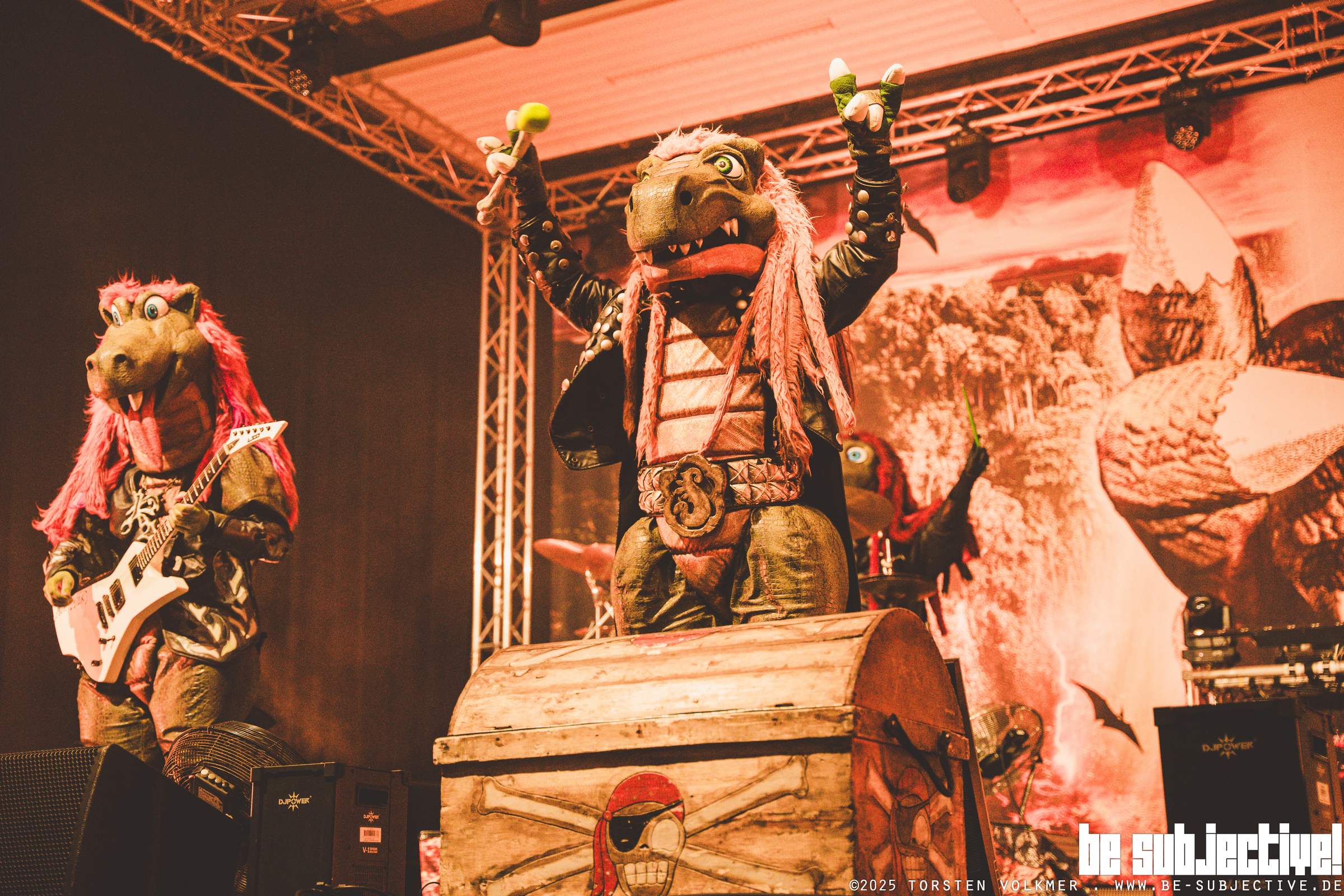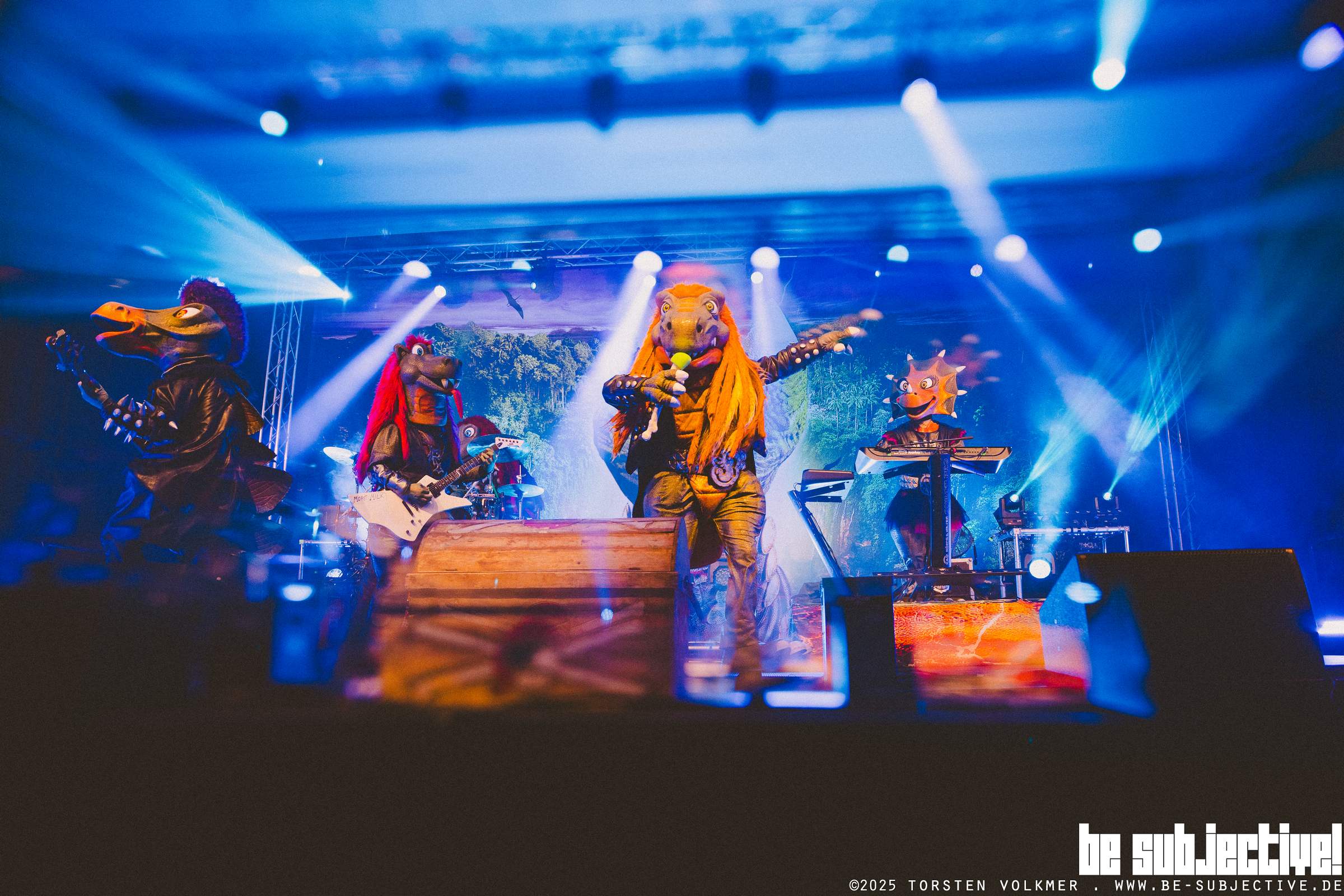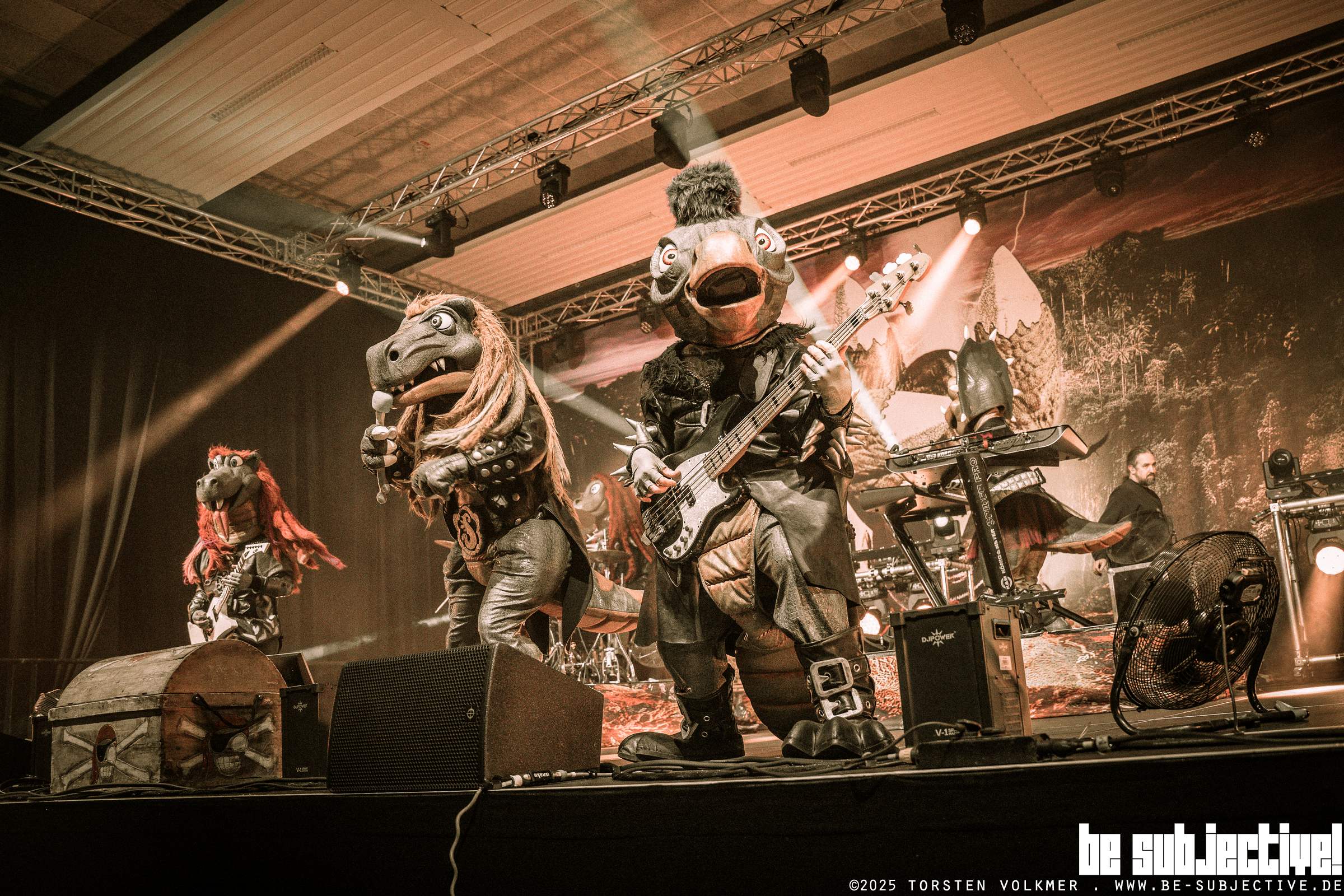 Die CD-Kaserne in Celle bebte. Die Dino-Rocker von „Heavysaurus“ betraten die Bühne in der Halle 10 vor rund 800 Fans, und dann ging die Party aber sowas von ab. Mit donnernden Gitarrenriffs, mitreißenden Rhythmen und ihrer unverkennbaren Mischung aus Hardrock und Spaß begeisterten sie Fans jeden Alters.
