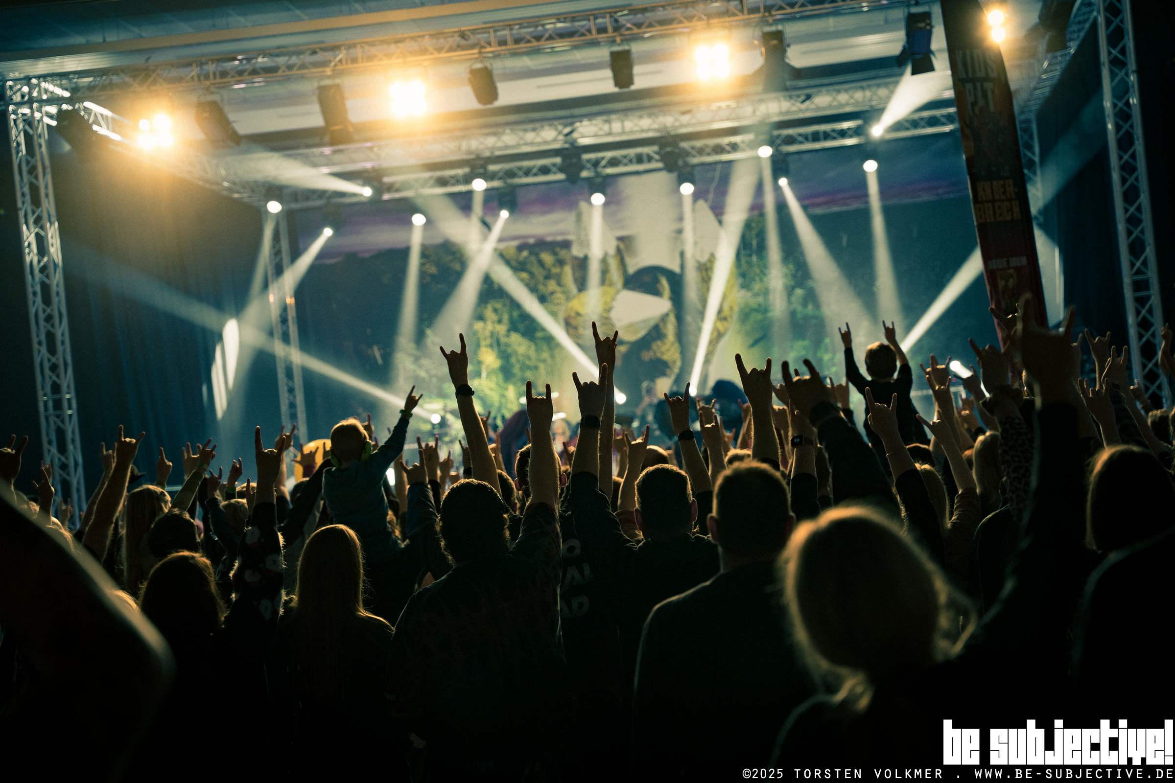 Denn nicht nur die Kids rockten ab. Da war auch so mach ein Erwachsener mit T-Shirts von AC/DC, Korn oder Manowar zu sehen. Man will halt den Nachwuchs langsam an den eigenen Musikgeschmack heranführen – die Lautstärke ist kind-gerecht angepasst.