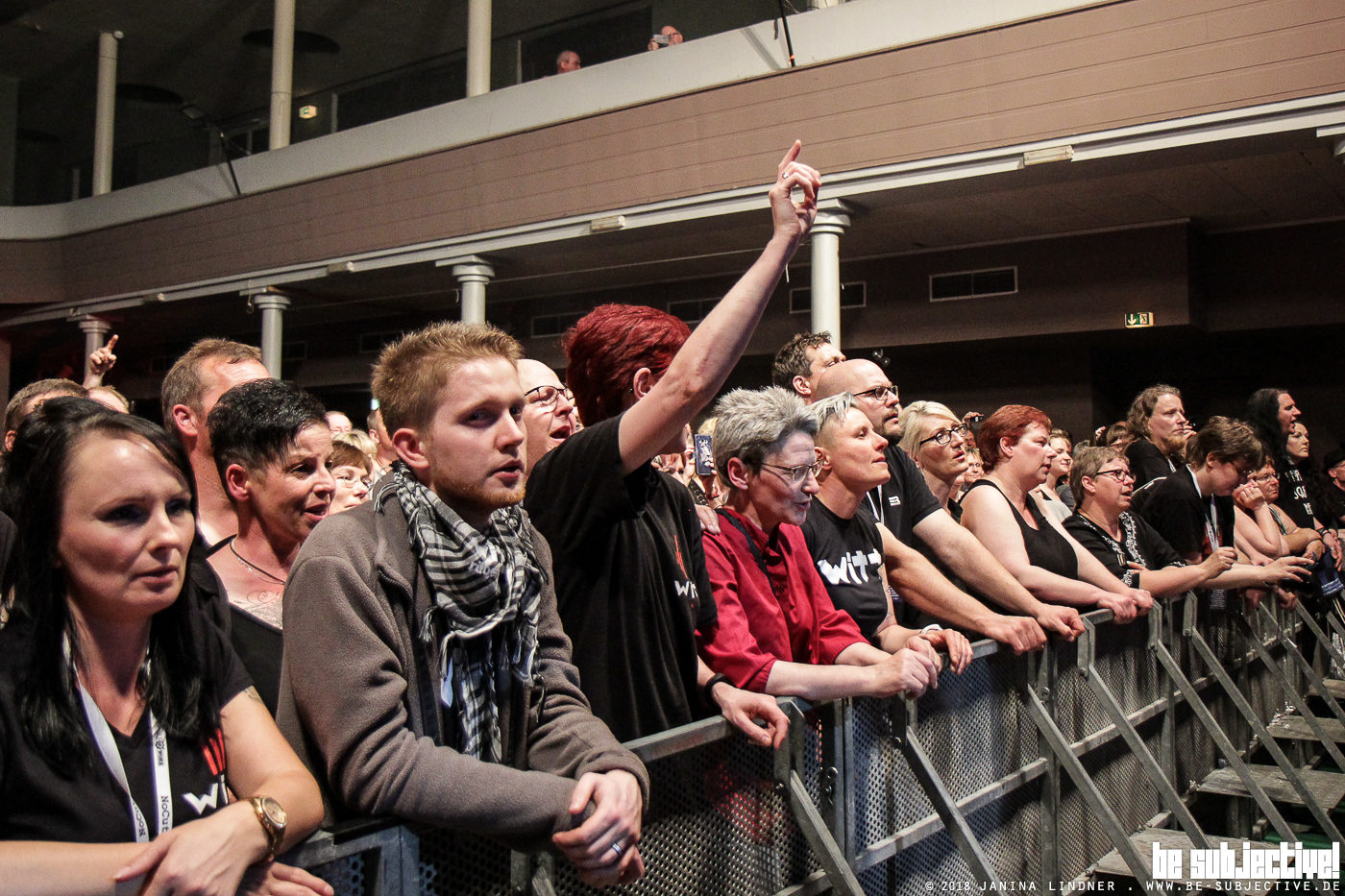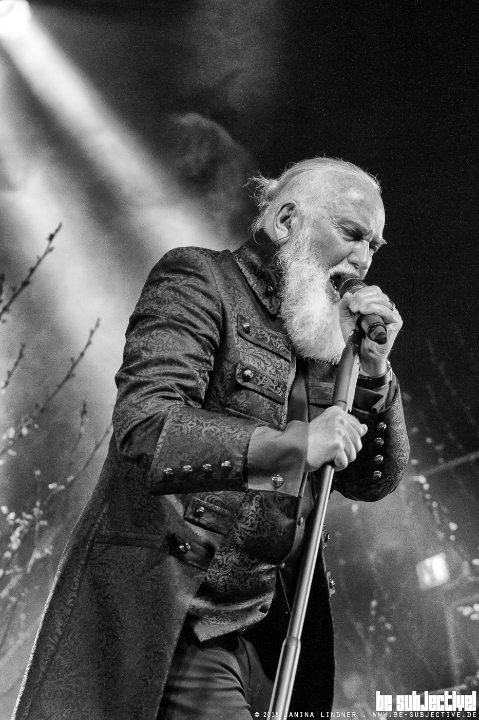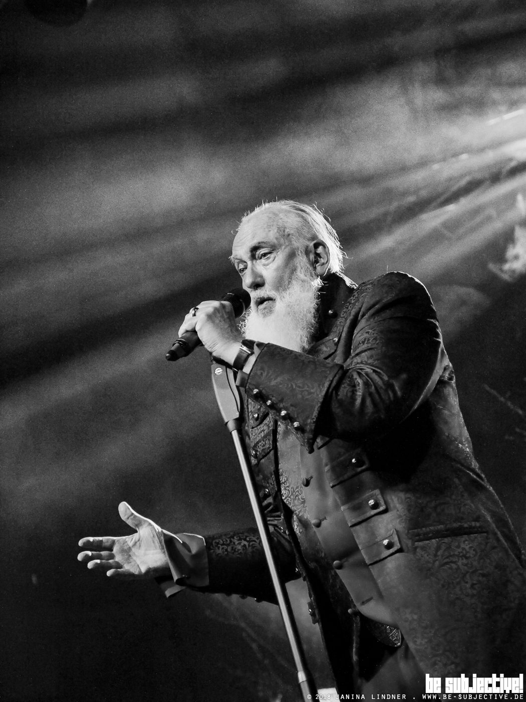 Ja, auch dafür lieben ihn seine Fans. Nach jedem Song wird geredet – vielleicht manchmal etwas zu viel – oder mit den Fans diskutiert, wann er denn nun mal einen älteren Song spielt. Denn die meisten Anwesenden dürften inzwischen bemerkt haben, dass die Songs der heutigen Setlist in genau der gleichen Reihenfolge auf „Rübezahl“ auftauchen. Wenn der Herr Witt sagt, dass er sein neues Album präsentieren möchte – dann tut er das eben auch. Lediglich sein Cover des Falco Songs „Jeanny Pr.1“ haut er uns heute Abend nicht um die Ohren. Häufige Zwischenrufe nach beliebten älteren Songs wie „Gloria“ bleiben deshalb zwar nicht unkommentiert, aber unbeantwortet. Die Stimmung in der Halle ist trotzdem gut. Mir bleibt vor allem „Wenn der Winter kommt“ mit seinem bombastischen Sound besonders positiv in Erinnerung.
