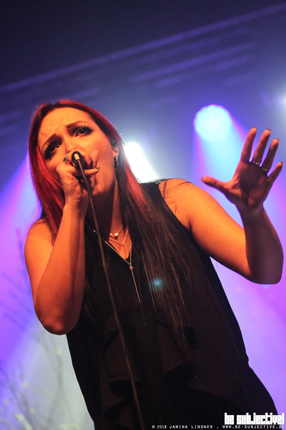 Scarlet Dorn starten pünktlich um 20:00 Uhr ihren ca. 40 Minuten Auftritt. Trotz ihren bisherigen Touren mit Lord of the Lost oder der Letzten Instanz dürften die Zöglinge von Lord of the Lost Sänger Chris Harms den meisten anwesenden Zuschauern noch unbekannt sein. Dabei ist Erfurt aktuell für sie sogar die meistbespielte Stadt in ihrer jungen Bandgeschichte.