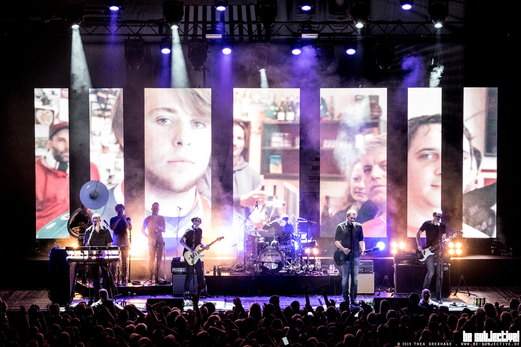 Die ersten Töne von „Rettung“ erklingen. Kettcar haben ein paar Bläser im Gepäck. Das Mehr! Theater jubelt. Stimmiges Set. „Scheine in den Graben“ funktioniert auch Live. Marcus singt und Reimer quasselt. Geschichten aus Hamburg, herzlich komische Anekdoten über seine Mutter. Reichlich Applaus für seine Mutter. Trotz all des Ernsts, der vor allem zuletzt Kettcarsongs bestimmt, könnte die Stimmung auf als auch abseits der Bühne kaum besser sein.