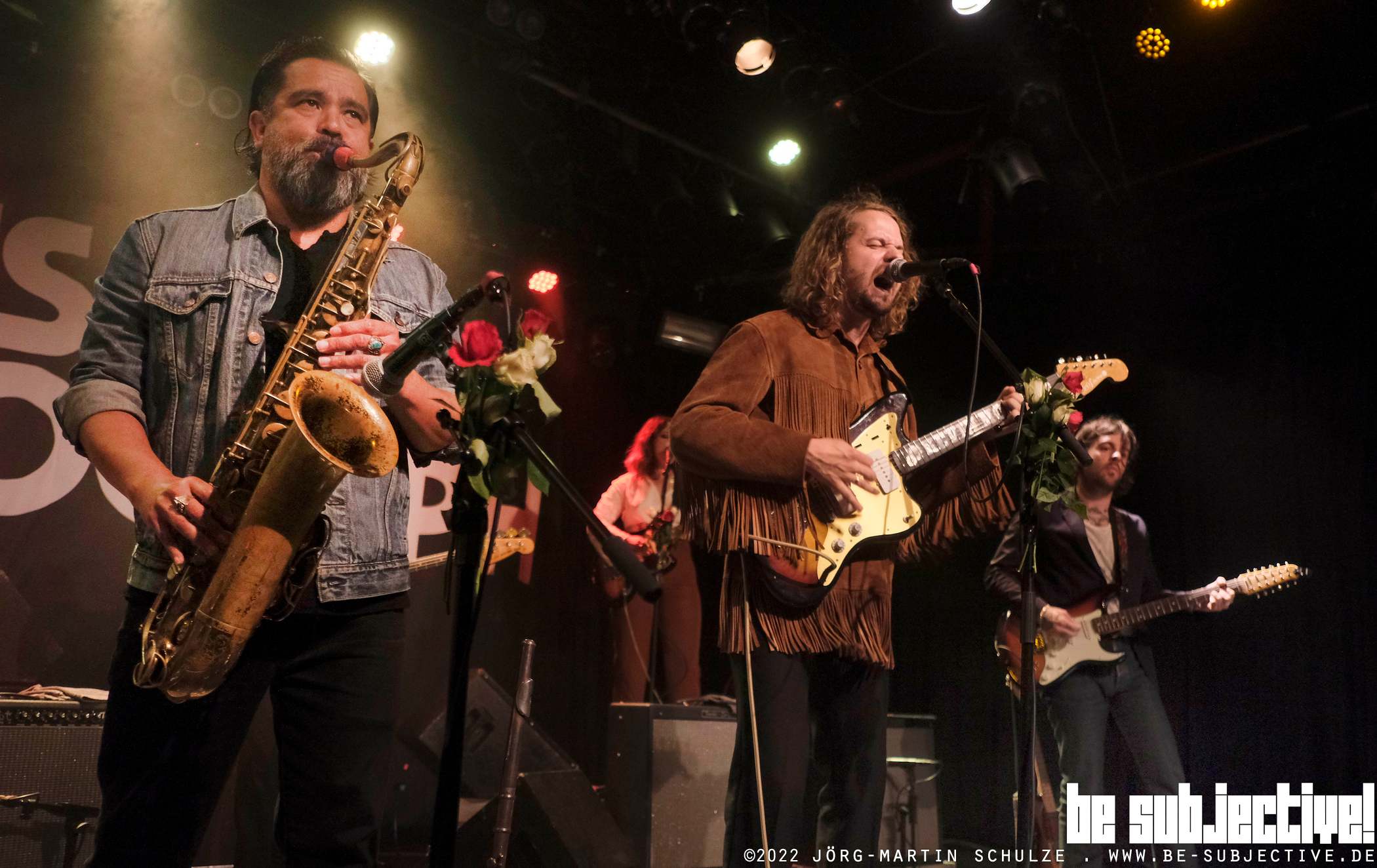 Kevin Morbys Gesang wird von einer sechsköpfigen Band begleitet. Sie sind vollkommen in die Musik vertieft und spielen mit einer beeindruckenden Präzision und Energie. Wechsel zwischen den Intensitäten und Tempi und harmonieren dabei perfekt. Darunter Cyrus Gengras als Bassist und Cochemea Gastelum wechselnd zwischen unter anderem Saxofon, Querflöte und Tambourin. An diesem Abend hat man sowieso schon das Gefühl kurz in Amerika gelandet zu sein. Als dann der Keyboarder Colin Croom für einen Song noch auf die Pedal Steel Gitarre wechselt, kommen auch noch richtige Country-Vibes rüber.