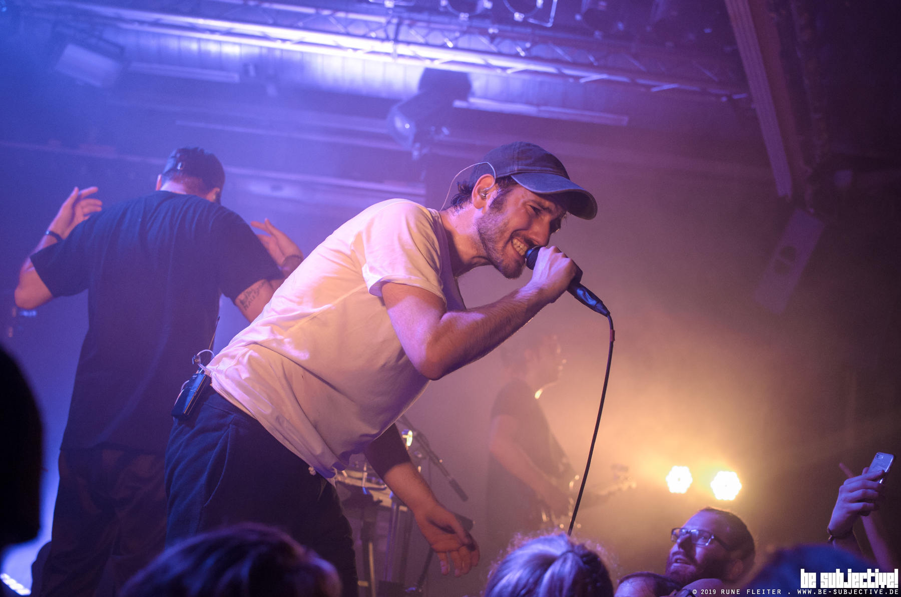 Eine ganze Menge. Die Frage von Sänger Jakob an das Bielefelder Publikum wird schnell zum Slogan des Abends und beschreibt dieses Konzert zudem perfekt, denn immer wieder fragt man sich genau das. Sei es, weil Sänger Jakob zum wiederholten Mal zum Crowdsurfen von der Bühne ins Publikum springt, dieses in regelmäßigen Abständen einfach komplett ausrastet, oder weil man sich nicht sicher sein kann, ob der Schweiß schon von der Decke tropft oder doch nur von einem der Nebenleute stammt.