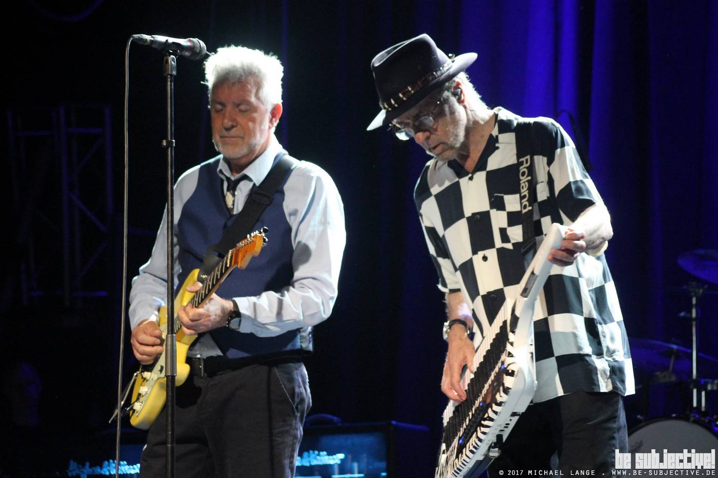 Wenn man auf die Setlist von Manfred Mann´s Earthband schaut, fragt man sich: „Kriegen die auch mal selbst was geschissen?“ Cover, Cover, Cover. Ganz viel von Dylan und Springsteen. Aber egal. Nur wenige verbinden „Blinded by the Light“ mit dem Boss oder „You Angel You“ mit dem Bob. All das wird MMEB zugeschrieben und das schon gefühlt seit hundert Jahren. Mit Robert Hart haben sie seit 2016 eine Top-Besetzung an den Vocals. Gut aussehend, sympathisch lächelnd und mit einer Megaröhre ausgestattet (ist das der Vater von Chris Martin?). Da kriegt „ Don’t Kill It Carol“ ein ganz neues Klangbild. Ganz tief hinein geht es in die Mottenkiste des Rock und der T.Rex-Dino „Get It On“ wird rausgekramt. Den 700 Fans ist es egal. „It´s only Rock´n´Roll, and they like it“.
