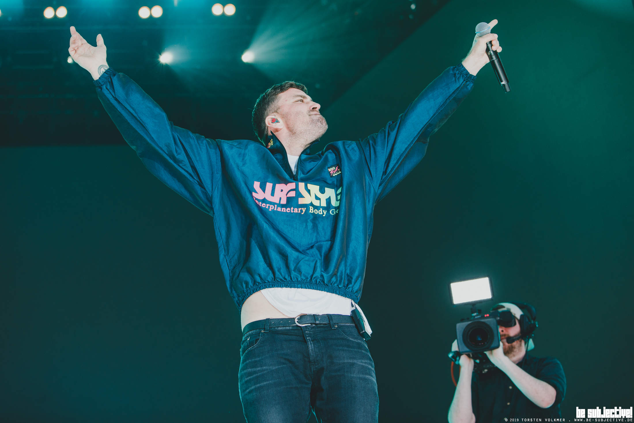Marteria ist dieser Kumpel und Weggefährte. Zusammen haben sie das Album „1982“ eingespielt. Jeder für sich ist schon ein Brett, aber zusammen sind sie Nonplusultra deluxe. Was beide verbindet ist nicht nur das Geburtsjahr 1982, sondern auch die Tatsache, dass sie nicht gerade aus Metropolen (Bielefeld und Rostock) kommen. Die Jungs wollten wohl der Provinz entfliehen. Raus. Flucht. Weg. Geschafft. Früher, so erinnern sie sich irgendwann im Laufe des Abends, haben sie im Musikzentrum in Hannover vor hundert Fans gespielt und hielten 1500 Fans mal für das Größte und Ende der Fahnenstange. Die Zeiten haben sich geändert. Alle Hände hoch und dann gibt´s nur noch Party vor 22.000 Menschen.