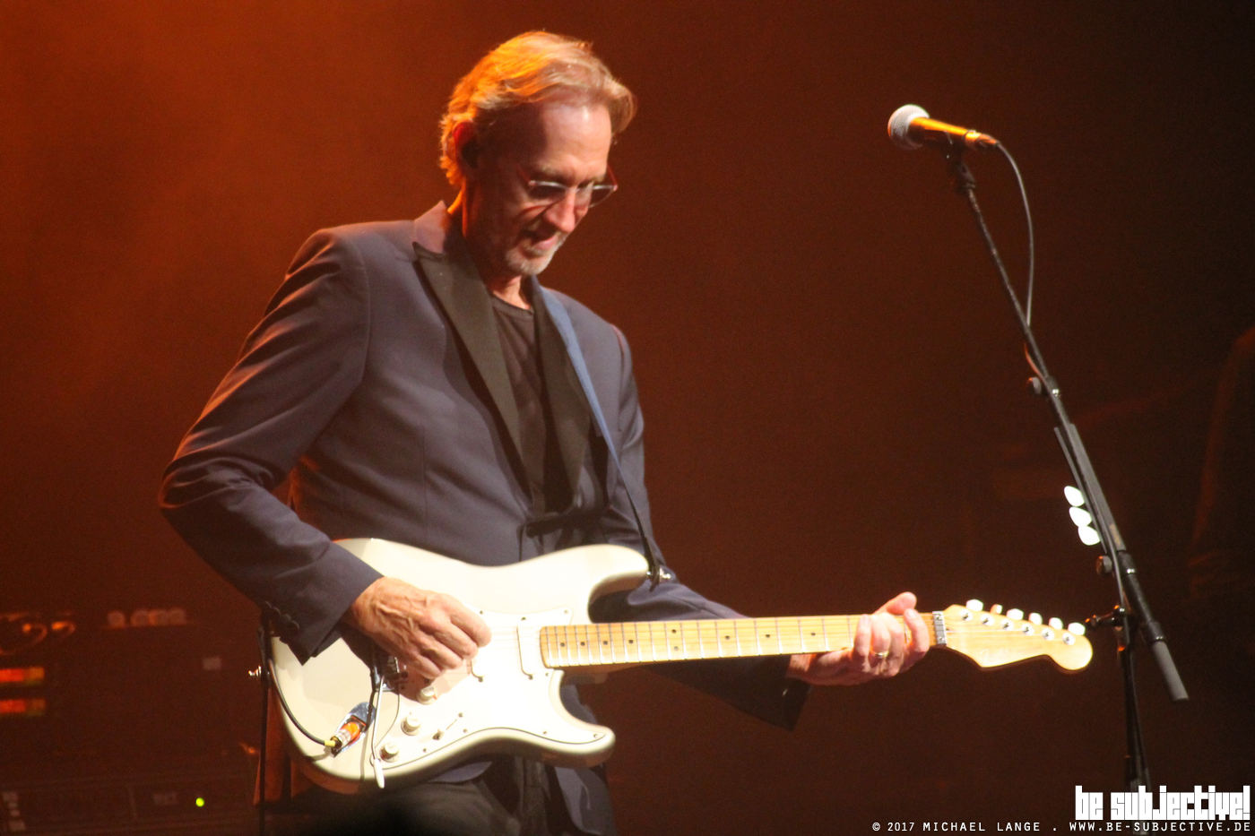 Und beim ersten Genesis-Hit „Land of Confusion“ geht das Theater / geht’s im Theater dann los. Die ersten Leute ploppen aus ihren Sitzen und beginnen zu tanzen. Und wenn erstmal einer/eine tanzt, dann trauen sich andere auch. Und plop,plop,plop. Wie beim Popcorn. Bald sieht man die Band nicht mehr, wenn man sitzenbleibt. So ein sch…önes Konzert. Also aufgestanden und mitgemacht. Und dann kommen sie die Hits, man erinnert sich wieder. Was? Das ist auch von denen? Tolle Mainstream-Nummern reihen sich aneinander. Pam, Pam, Pam. Hit auf Hit geht über die Bühne. Druckvoll mit glasklarem Sound, mal treibend, mal zum Träumen. Und immer perfekt performt. Hier sind halt Könner am Werk. Mike Rutherford macht hier keinen auf Chef. Eher zurückhaltend, fast schüchtern ist er ein Teil des Teams. Sehr sympathisch. Und sie können auch witzig: „Meine Schulband hieß Schulband“, sagt Roachford. Darauf Rutherford: „Meine hieß Genesis“.