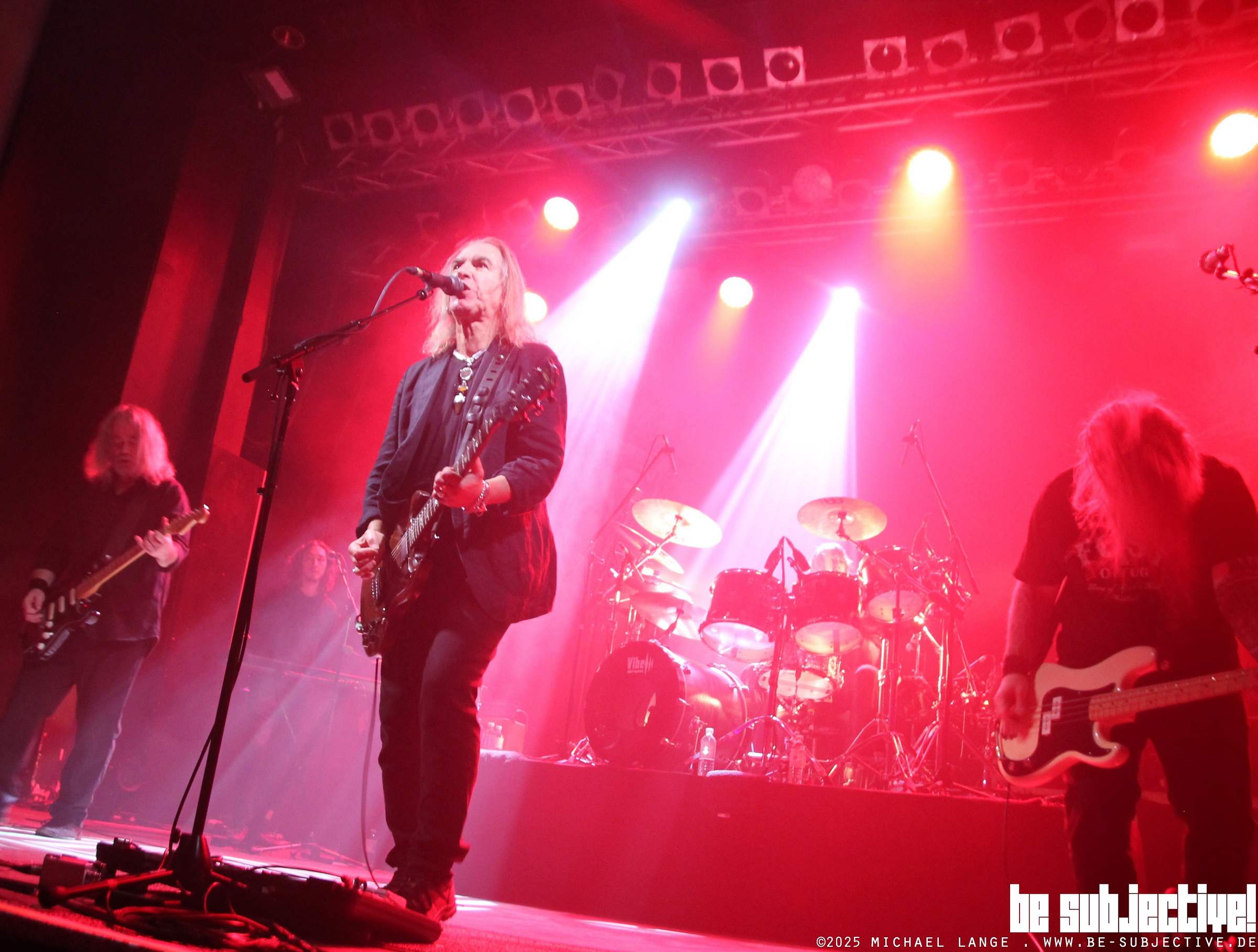 Erstmal kommt der Meister himself, allein und akustisch auf die Bühne. Die ersten drei Songs gehören ihm. Im Opener „Snelsmore Wood“von 1996 wird das Publikum darauf eingeschworen, das es sich lohnt für eine Sache zu kämpfen. Recht hat er, aber man muss halt immer wieder die Leute da hin schubsen. Das ist sein Auftrag, sein Lebenselixier, Sullivan ist ein Getriebener, wird es immer sein.