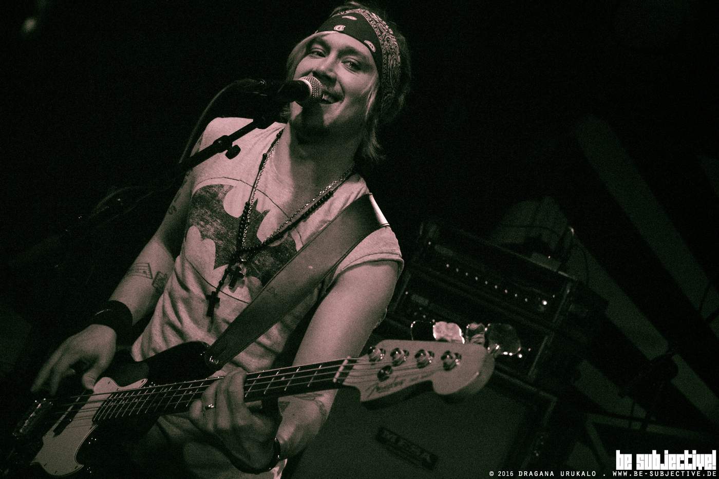 Anschließend wird uns dann eine kleine Anekdote aus Spanien erzählt, wo man diesen Song wohl nicht hätte spielen dürften. Einigen „Señoritas“ hätte der Song absolut nicht gefallen und buhten die Band deswegen aus. Das bleibt ihnen im LUX an diesem Abend dann aber zum Glück erspart. Das Publikum steckt ihre Energie viel lieber in das Feiern mit der Band. Nach dem Lied hagelt es Applaus und die Band muss noch schnell einwerfen, dass sie genau wissen, wie „cheesy“ ihre Songs teilweise sind und leitet damit auch direkt das nächste Klischeelied mit dem Namen „Born To Break Your Heart“ ein.