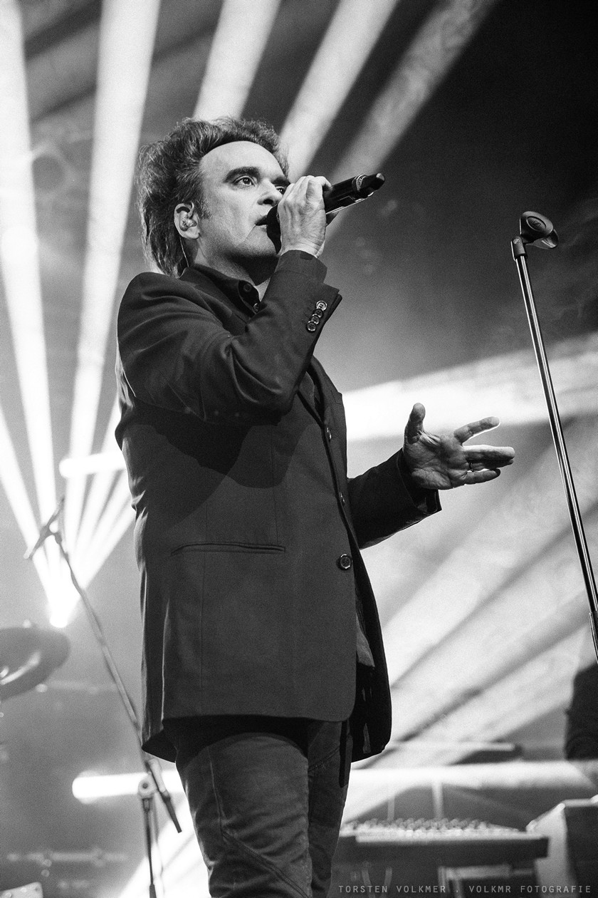 „Deine Lakaien – stets zu Diensten“, witzelte Frontmann Veljanov in einer der spartanischen Pausen zwischen zwei Songs, um nach eineinhalb Stunden Spielzeit schon mal das nahe Ende anzukündigen.