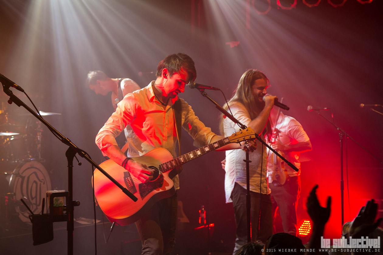 Im Netz wurde vor dem Auftritt schon heftig diskutiert, ob es eine Supportband gibt und welche Band das sein würde. Somit war die Anspannung groß. Mit zehn Minuten Verspätung begann die Show und es stand fest, dass Versengold ohne einer weiteren Band auftritt. Die Bühne tauchte sich in blaues Licht, Nebel kam auf, weiße Lichtstrahler durchzuckten das Musikzentrum und plötzlich durchhallte ein Donner den ganzen Raum. Das ganze Publikum zuckte komplett zusammen vor Schreck. Das Intro hatte begonnen. Einer nach dem Anderen betrat die Bühne und nahm seinen Platz ein. Und schon begann der erste Song „Zeitlos“- Namensgeber des neuen Albums und der Tour.
