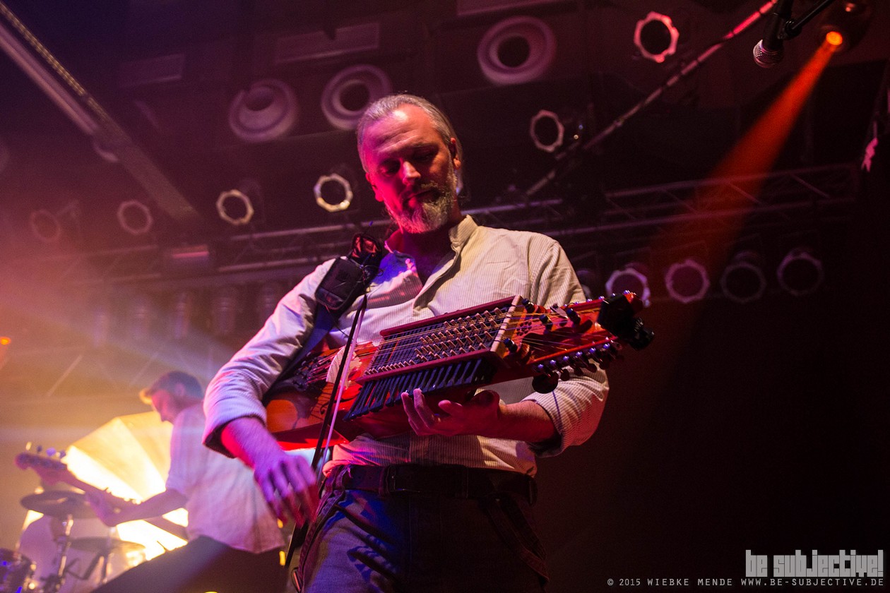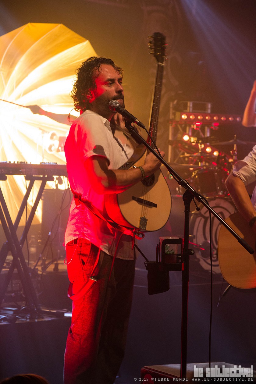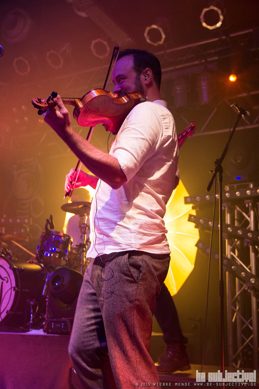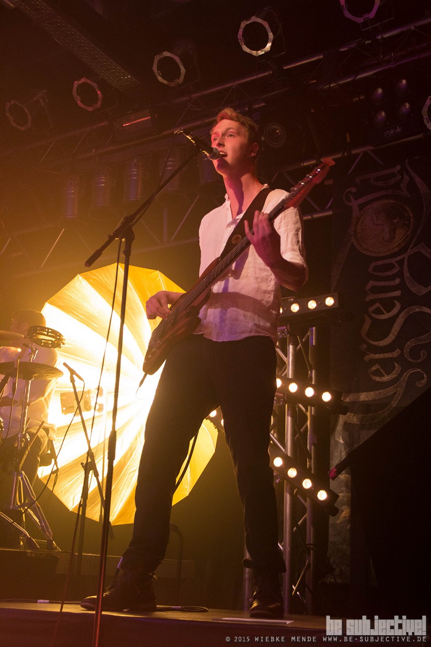 Das Publikum war außer Rand und Band. Der Veranstalter hatte die Empore im Musikzentrum freigegeben und so fanden 530 Leute Platz, die schon bei den ersten Klängen auf diesen nicht mehr zu halten waren. Beim Song „Hoch die Krüge“- eine Singleauskopplung vom Januar- sang das Publikum den Refrain komplett alleine- einfach Begeisterung pur. Spätestens beim folgenden Lied- ein instrumentaler Song- waren selbst die Skeptiker unter den Gästen überzeugt. Versengold ist eine Band, die für jeden etwas zu bieten hat. Und somit gab es ein abwechslungsreiches Programm. Neben Trink- und Tanzlieder gab es auch rein instrumentale Einlagen, ruhige Songs und Balladen. Und zu jedem Song hatte die Band eine kleine Geschichte zu erzählen. So wurde „Frühlingsgruß“ das erste Mal überhaupt live gespielt. Ein ruhiges Lied, das im Vorfeld für Diskussionen gesorgt hatte, wieso ein ganzer Song über eine Blume geschrieben wurde. Mit einem Augenzwinkern erklärte Malte, dass es nicht nur um eine Blume ginge und man doch noch einmal über den Taxt nachdenken sollte. Das Publikum lachte und grölte.