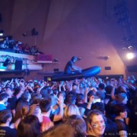 Brecht, die olle anti-illusorische Theatersau, hätte es gehasst. Der »Flake«-Fake zum Haifisch-Dreigroschen-Liedgut im Gummiboot auf hoher See, von einem Meer aus Händen getragen, im Jubelsturm des Publikums. Welch Symbol! Zu viel, zu echt, zu poetisch, zu viel zum Glotzen. Aber heute wird niemand belehrt, heute feiern Völkerball bloody hot pussy shit. Warum? Weil sie’s können. Lindemanlauff, spuckt auf Brecht, auf die Bühne, zum Kotzen schön dreckig, ein Bestrafer vom Herrn. Beinahe möchte man darüber hinwegsehen, dass die Saitenspieler etwas lethargisch in den Seilen zu hängen scheinen und das Feuerrad sich nach der xten Fontäne auch nicht neu erfinden lässt.