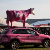 Wie der Name schon sagt: es war ein mittelalterliches und ein Phantasie-Spektakel. So fehlten die mittelalterlichen Heerlager ebenso wenig, wie mittelalterliche Handwerkskunst, Wahrsagerei und Ritterkunst. Ebenso kam die Phantasie nicht zu knapp, was allein schon durch Gisi´s pinkes Auto mit der pinken Milchkuh auf dem Dach am Eingang deutlich gezeigt wurde. Obwohl das Gelände riesig war, war es durch das kleine Wäldchen in der Mitte natürlich in drei Areale eingeteilt, wodurch die große Veranstaltung einen ganz besonderen, gemütlicheren Scharm bekam und gleichzeitig wurde viel Schatten bei sonst 30° C geboten.