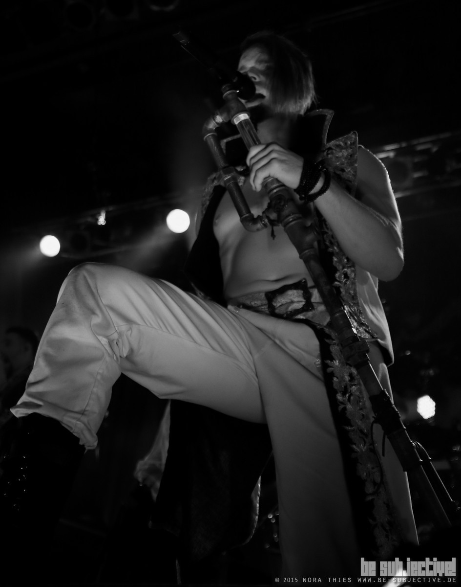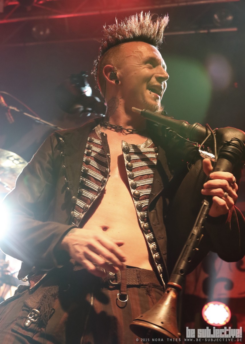 Los ging es mit Nachtgeschrei als Vorband. Für mich persönlich absolutes Neuland. Aber hier zeigte sich mal wieder, dass es sich oft lohnt auch mal bei den Bands die man noch nicht kennt genauer hinzuhören. Besonders die Mischung aus Drehleier, Dudelsack und E-Gitarre aber auch die eingehende Stimme von Sänger Martin gefallen mir gut.