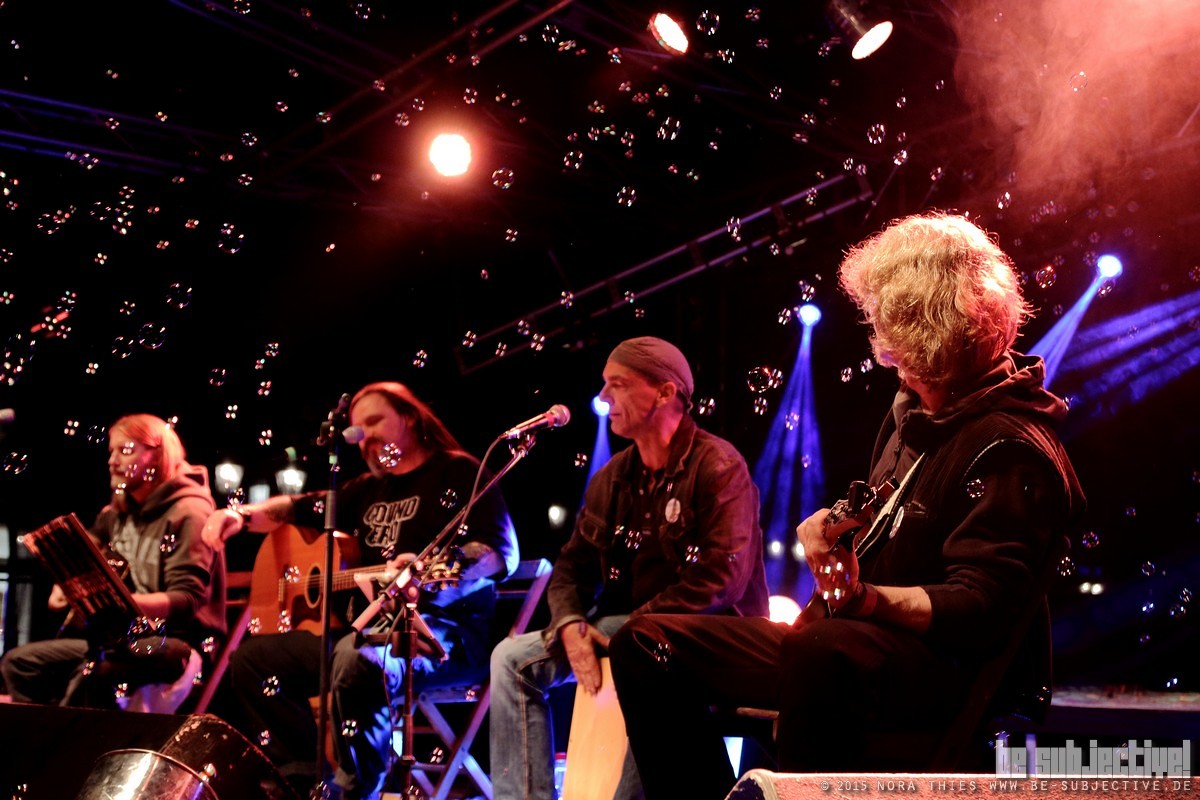 Bevor wir uns nach einem langen Tag auf den Heimweg machen gönnen wir uns noch den Auftritt von Just 4 Campfire auf der Stechbahn. Die Jungs machen Akustikrock vom allerfeinsten. Besonders die Stimme von Sänger Matcho Herzstein geht einem durch Mark und Bein und gibt den Songs das ganz besondere Etwas.
