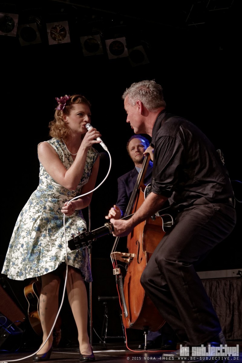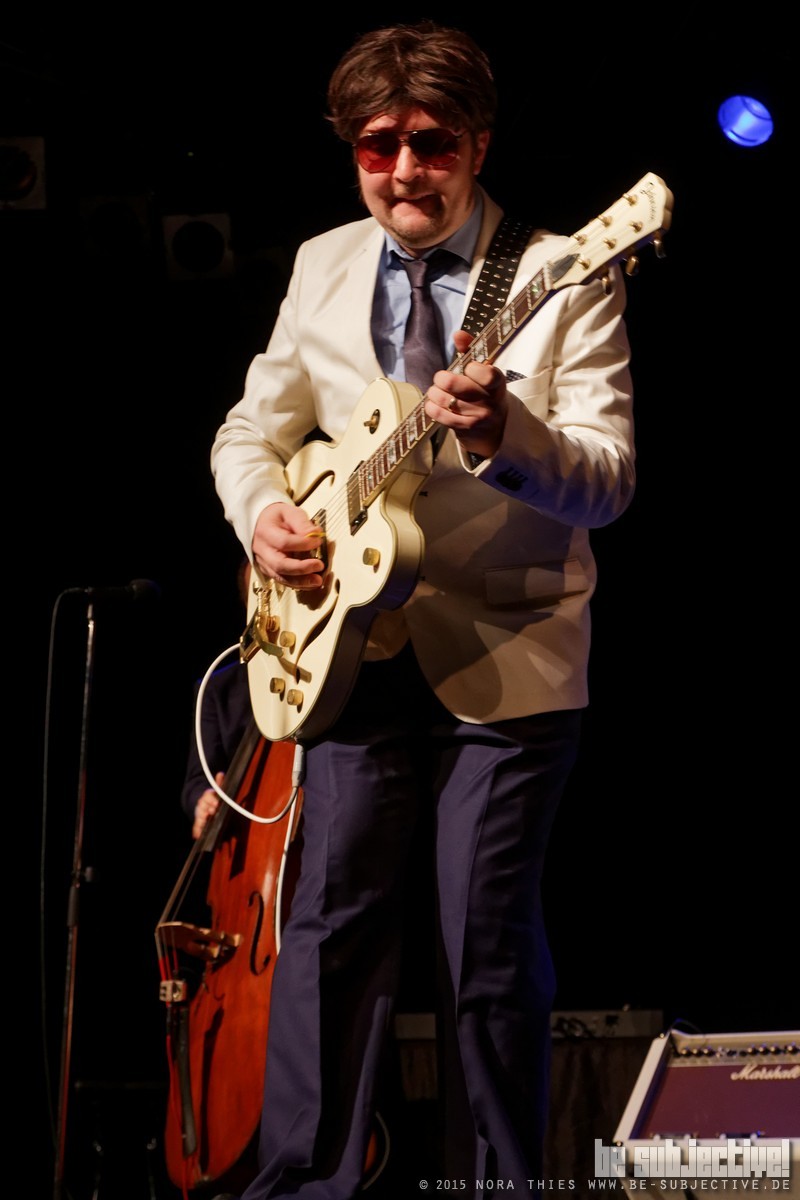 Kein Wunder, schon bei den ersten Tönen die Robert Tyson, der aus Amerika stammende Sänger der Band, singt muss man nur die Augen zumachen um sich in die 60er Jahre zurückzudenken. Wenn man Ihn nicht sehen würde könnte man denken Jonny Cash persönlich stünde dort oben auf der Bühne.