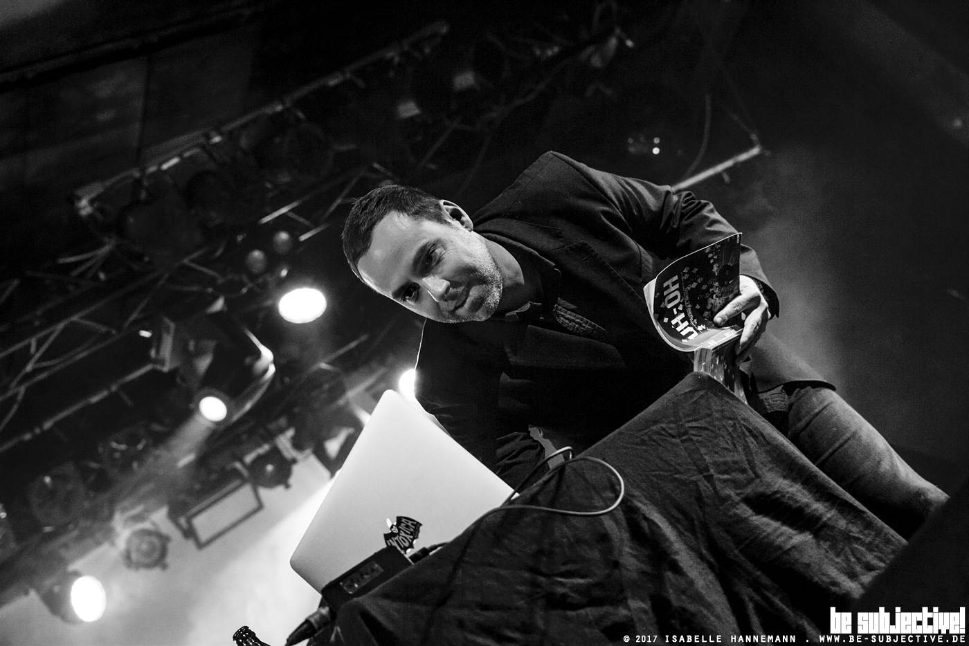 Aufgesogen vom Astra. Musik und Brüste aus den 70er Jahren zucken durch die Säulenhalle. Ein roter Schlaghosen-Cord-Overall oder ein Karo-Miniröckchen wären heute nicht so falsch gewesen. Damn. DJ Howie Pyros intocica radio ist das erste erregende Moment im Teatro Fiasco. Das Programmheft klärt auf, dass seine Plattenteller wahnsinnig (heiß) machen: Auf diesen Abend, auf alles, was nicht jugendfrei ist, auf mehr. Kein Wunder, Pyro hat/te Shows und Projekte von und mit the Cramps, Joey Ramone, Danzig und many more am laufen. Pyros seltsamer Scheiß macht auf jeden Fall an (… und taub, ist’s doch etwas zu laut).