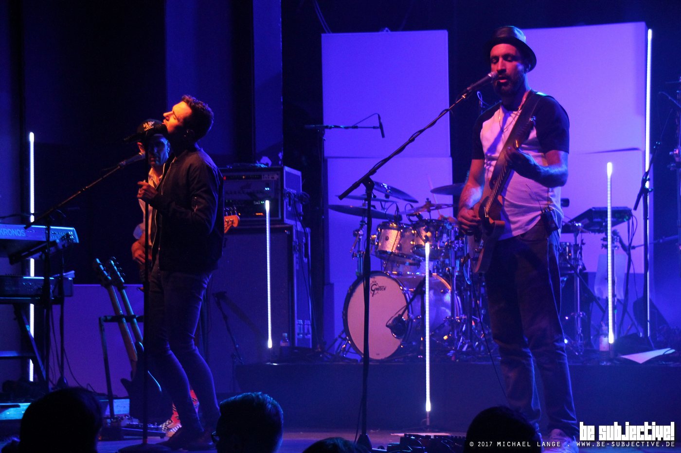 Jeder Farbton wird mit einer kurzen Einstimmungsmusik begonnen. Die Band verharrt hierbei, positioniert sich, dreht dem Publikum auch mal den Rücken zu. Los geht’s mit der Fahrt ins Blaue. Ungewöhnlich. Ruhig. „Don´t Help me“. Augen zu. Innehalten. Wieder auftauchen.