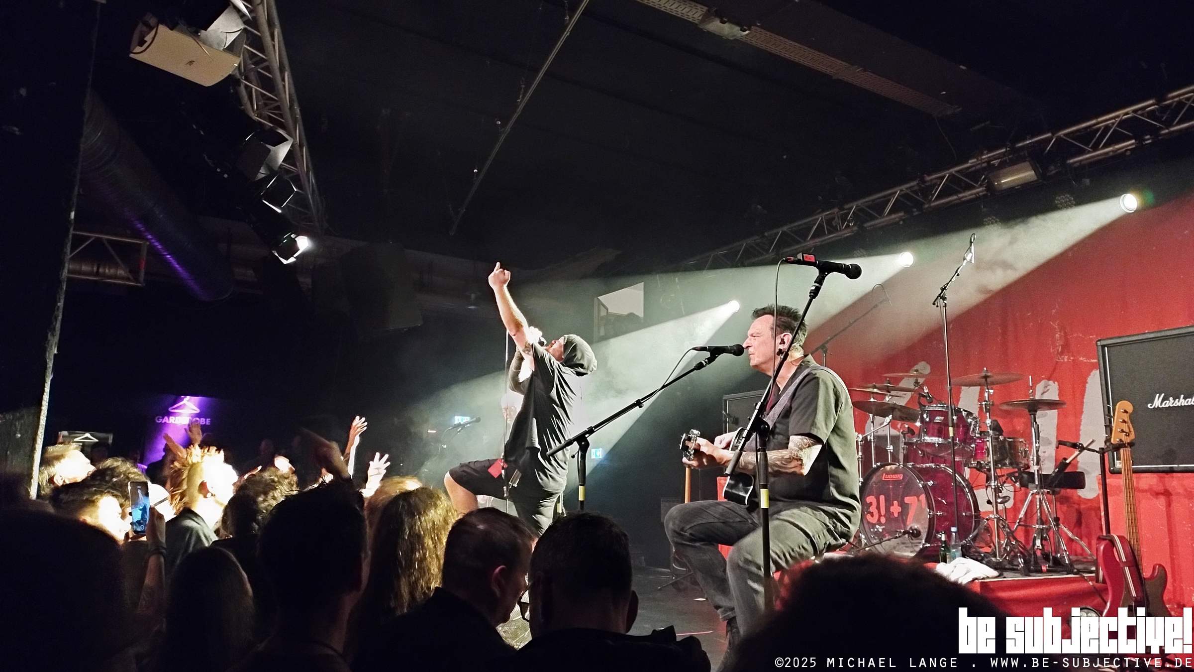 Auch SLIME haben in 2025 ein neues Album veröffentlicht. „ 3!+7(Hoch 1)“ heißt es. Klingt kryptisch, bedeutet letztendlich aber nur, dass es das 10.Studioalbum ist. Für SLIME war das Jahr 2025, sowas wie ein Reinschnuppern. Hier mal ein Festival (unter anderem auf dem Fährmannsfest), da mal ein Auftritt. Das hat jetzt ein Ende, jetzt geht’s auf Headliner-Tour durch Deutschland. SLIME brauchen nicht Animieren: „So jetzt machen wir mal einen schönen Pogo-Kreis, und dann geht´s rund“. Nein, es dauert ungefähr 9,83 handgestoppte Sekunden, da brennt schon die Hütte beim Opener „Komm schon klar“, dann „A.C.A.B“ und „Armes Deutschland“. SLIME sind nicht nur gefühlt derzeit schwer angesagt.