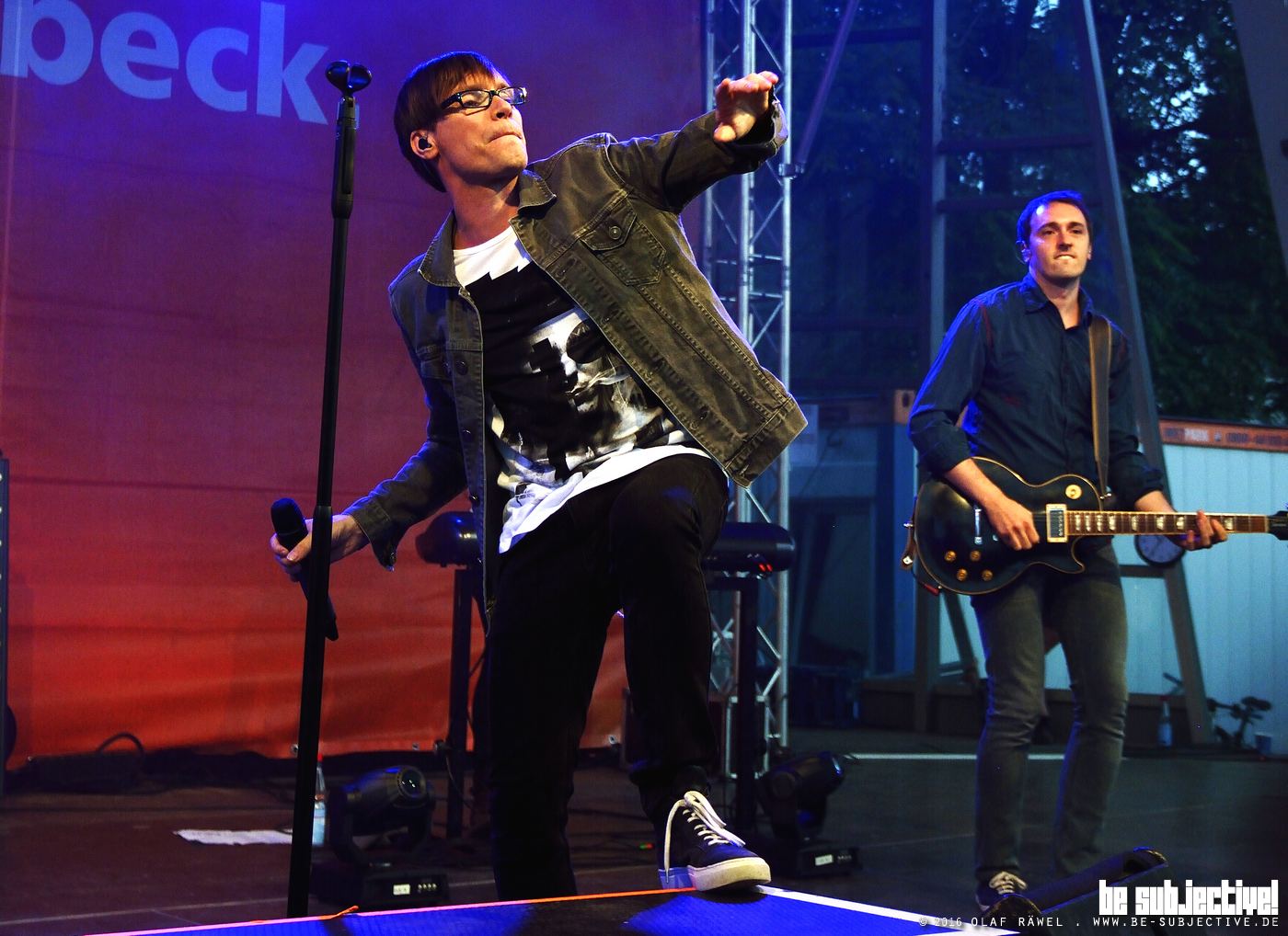 Vor der Bühne haben sich aber erst nur wenige richtige Fans eingefunden und einige vereinzelte Gestalten saßen im Umkreis auf Bierbänken, sich eher ihrem Essen und Getränken zugewandt. Doch dieses schien dem Sänger Louis Manke und seine Mannen nicht im geringsten zu stören. Mit gewohnter Freude an der Musik starteten die Berliner mit dem Song „Den Träumen so nah“ und spielten konsequent das erste Set durch.