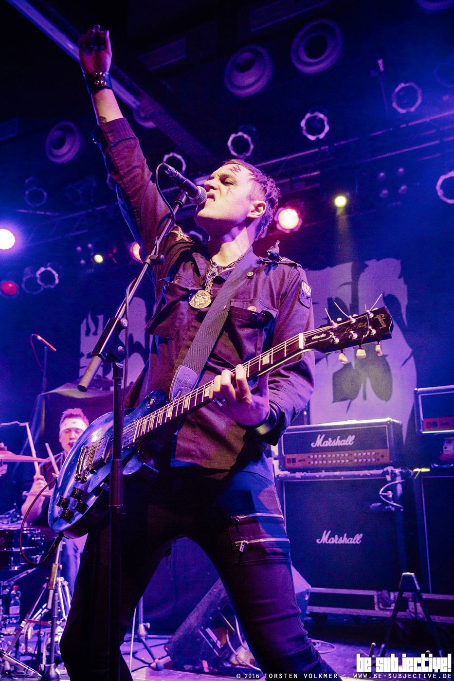 Als „Music for outsiders“ definiert die Band ihren eigenen Sound und trifft damit den Nagel auf den Kopf. Das Publikum wird einfach nicht richtig warm mit ihnen, auch wenn der Bassist wie wild auf der Bühne herumhüpft und damit versucht, dem Punksound noch ausdrücklich einen wilderen und chaotischeren Touch zu verleihen. Stattdessen wird zum Zeitvertreib im Publikum lieber das Smartphone gezückt und gehofft, dass doch bitte irgendjemand bei WhatsApp etwas Unterhaltsames gepostet hat. Insgesamt ist die Band vom Tempo her einfach viel zu schnell und zu eintönig, um die Ohren der Anwesenden auf feinsten Goth’n’Roll vorzubereiten, der noch zu erwarten ist.