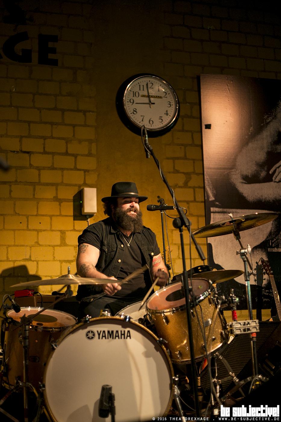 Es ist zugegeben etwas ungewohnt, wenn man vor einem Konzertabend „Where the Fuck ist eigentlich Isernhagen?“ ins Navi tippen muss und dann in den Speckgürtel von Hannover geleitet wird. Aber warum auch nicht? Es muss ja nicht immer Berlin, Hamburg, München oder Köln sein. In Isernhagen angekommen führt einen das Navigationsgerät durch dunkle Gassen im Industriegebiet und fordert dazu auf, vor einer riesigen Lagerhalle zu stoppen. So fängt jeder mittelschlechte Horrorfilm an, mag mensch meinen, aber hier scheint es recht sicher. Vor der Eingangstür mit dem „Blues Garage“-Schild reiht sich US-Car an US-Car. Cadillac Escalade, Ford Mustang und der ein oder andere Chevrolet lassen bereits vermuten, wie es im Inneren der Blues Garage ausschaut. Nach dem Öffnen der schweren Holztür werden sämtliche Erwartungen erfüllt: US-Kitsch und unzählige Memorabilien von all den großen Musiklegenden schmücken jede Ecke der Räumlichkeiten, welche durch ganz viel Liebe zum Detail und ein paar Holzbretter zusammengehalten werden.