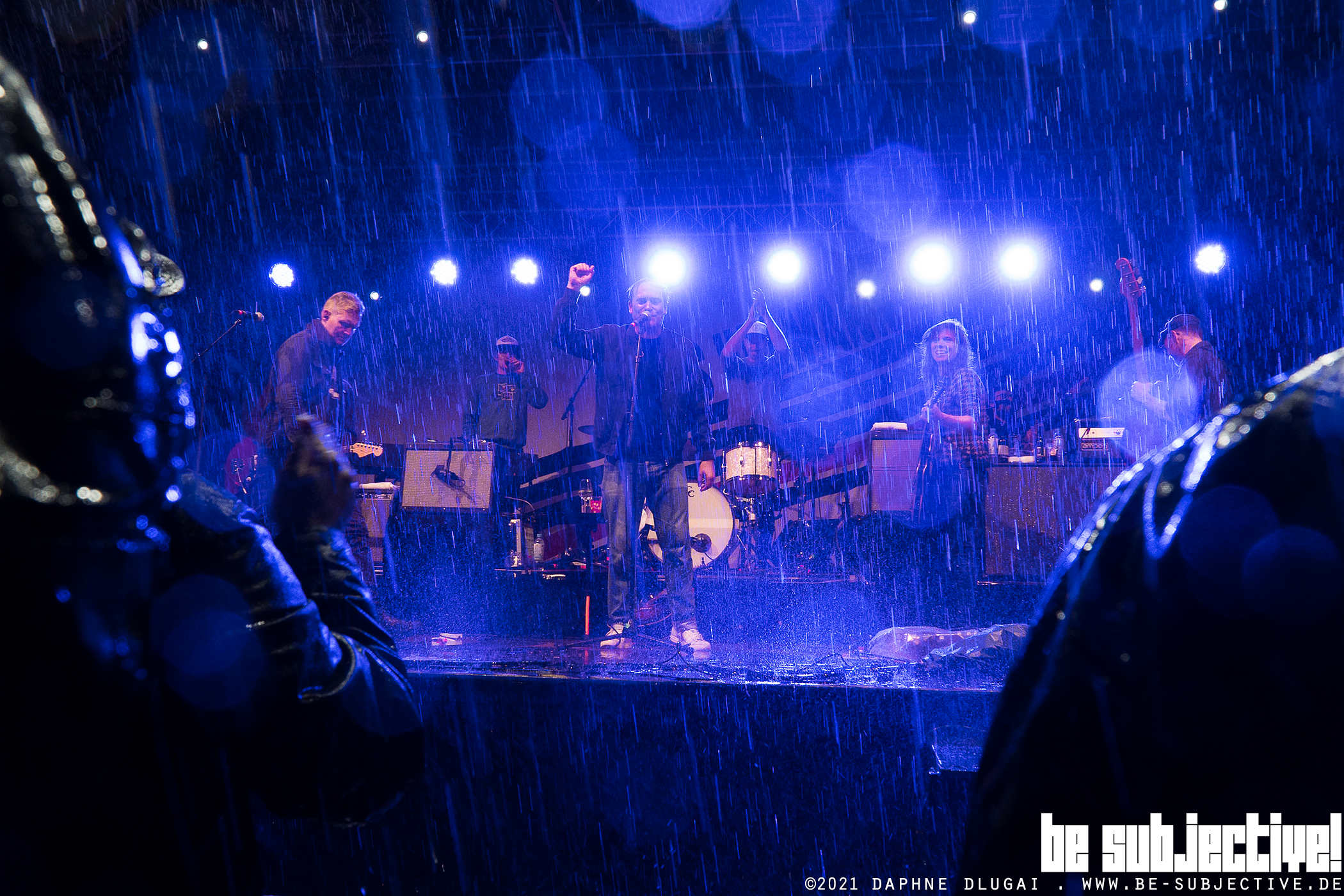 Der immer wieder aufkommende Regen tut der Stimmung keinen Abbruch. Endlich wieder ein Livekonzert. Endlich wieder im Stehen. Endlich wieder zusammen. Ein Moshpit bei Thees Uhlmann hat die Welt auch noch nicht gesehen. Lasst die Lachse schwimmen!
