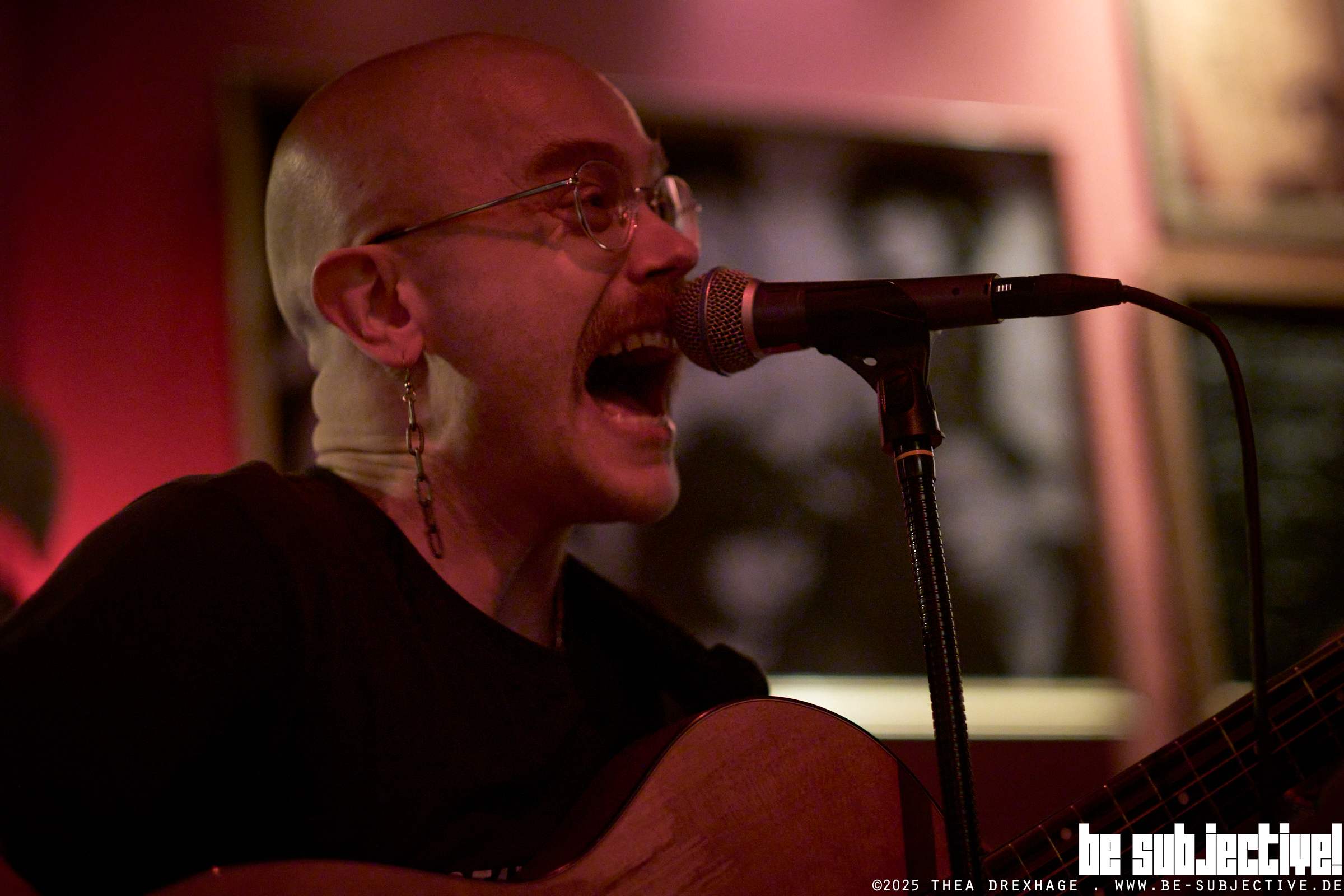 Für einen Donnerstag-Abend in der stressigen Vorweihnachtszeit füllt sich die kleine Eck-Kneipe wirklich gut. Auf der Bühne wartet einsam der Mikrofonständer und ein winziges Effektgerät. Eckkneipengespräche, kühle Bierchen und durchweg gute Laune, bis es dann etwas verspätet losgeht. Tigeryouth kommt mit Gitarrentasche auf die Bühne gestiefelt, packt seine abgerockte Klampfe aus und legt eigentlich ohne großes Fackeln und vor allem ohne Setlist los. Und was soll man sagen?
