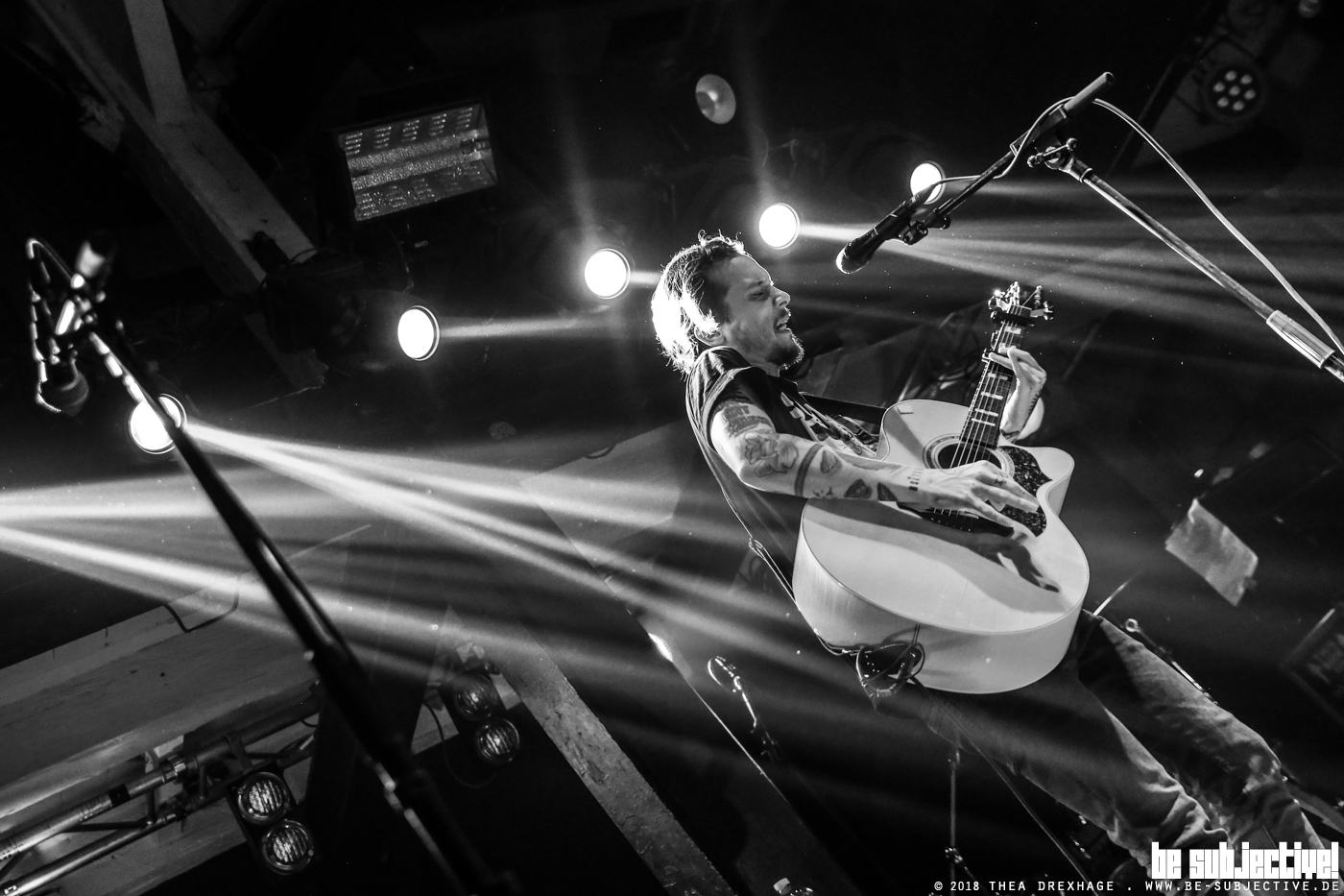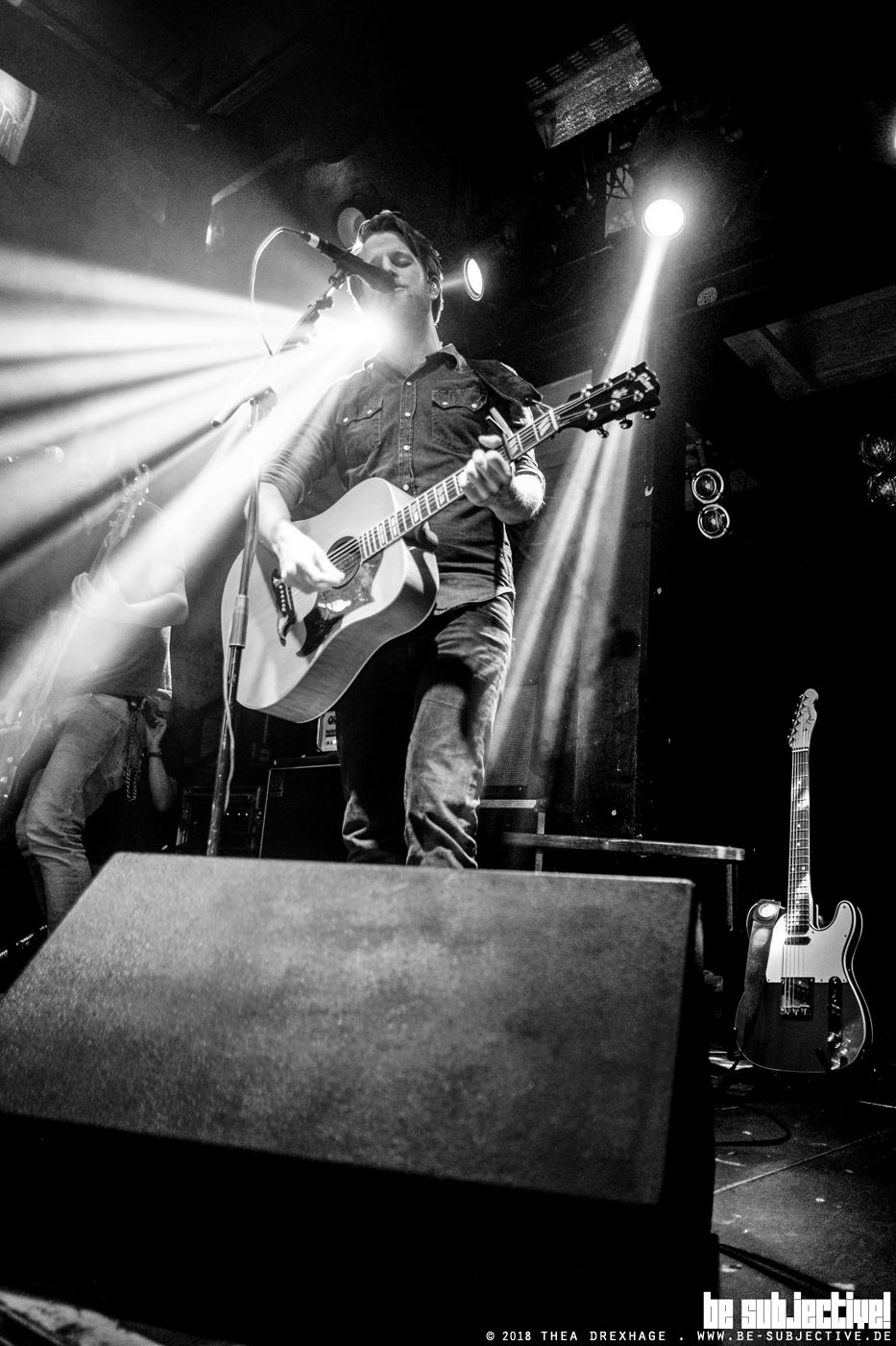 Zwischen drin gibt es Tim Vantol immer mal wieder Solo, nur mit seiner Klampfe. Dabei findet sich dann auch Zeit für altere Stücke wie „Four Wheels and a Sixstring“. Der ganze Abend bleibt fröhlich ausgelassen. Das Mitsingen klappt unter ausführlicher Direktion seitens der Bühne. Als Vantol gegen Ende des Abends entdeckt, dass er tatsächlich mal in einem Laden mit Balkon spielt, zwingt er kurzerhand die drei Leutchen, die es sich dort oben gemütlich gemacht haben, allein mitzusingen, was nach etwa fünf Minuten auch klappt, während sich der Rest des Publikums unten den Arsch ablacht. Gegen Ende begibt sich Vantol allein mit seiner Gitarre ins Publikum, um seine Interpretation von „Wonderful World“ sowie „Bitter Morning Taste“ zu spielen.