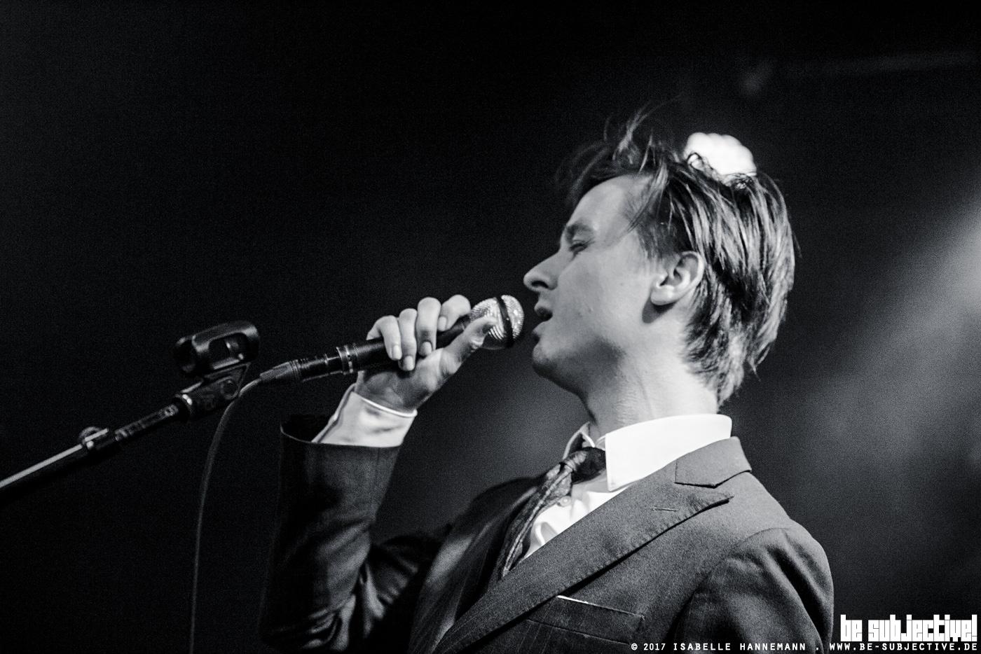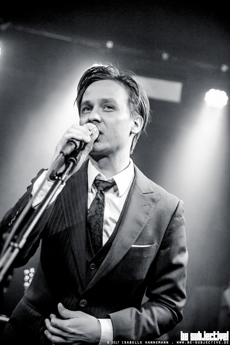 An diese Stelle gehört der obligatorische Satz: „Nach einer kurzen Umbaupause entert die Hauptband die Bühne.“ (Konzertkritikenklischees: Fuckyeah!) Eine Band als sympathisch zu bezeichnen ist eine ähnlich ausgelutschte Beschreibung, ich weiß, aber was willste machen? Tom Schilling & The Jazz Kids sind sympathisch. Natürlich trägt man zu dieser Musik Anzug und Krawatte. Die Professionalität der Performance und das Pathos der Songtexte wird kontakariert durch die Interaktionen der Musiker miteinander und Schillings liebenswert dahingenuschelten Anti-Moderationen. Sinngemäß: „Heute ist das erste Konzert der Tour. In Hannover.“ Das Publikum applaudiert begeistert. „Ja, das hat sich eher zufällig ergeben.“ Knüller.