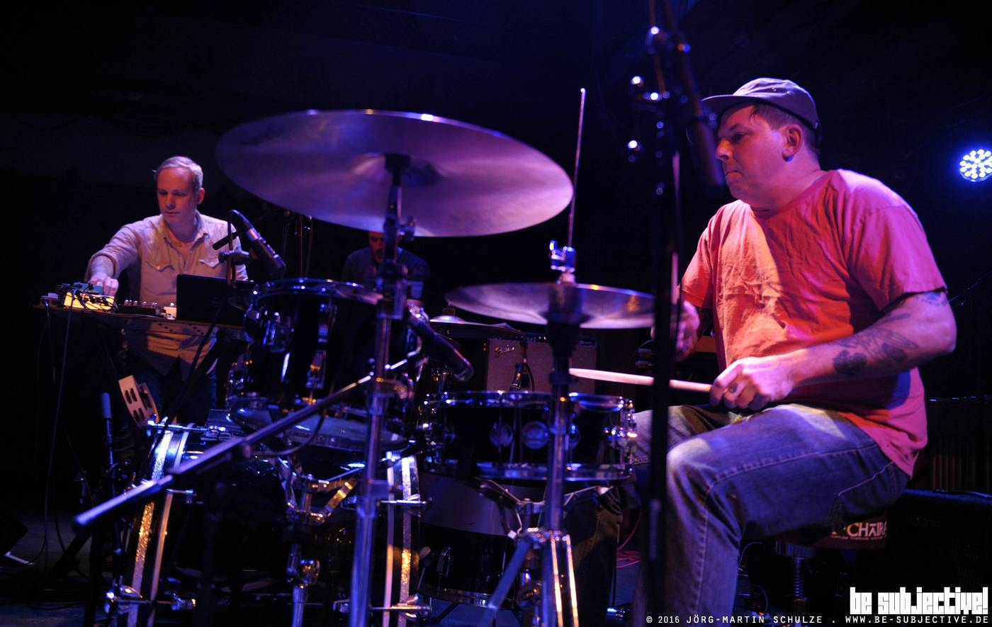 Was 1988 als Simple begonnen hatte, ’92 in Tortoise umbenannt wurde, ist nun schon seit fast 25 Jahren als Formation unterwegs, um den Leuten auf der ganzen Welt einem ganz speziellen Klangkosmos live darzubieten. Jede/r, die/der die Band aus Chicago schon ein Mal erlebt hat, will dies erneut tun, denn jedes Konzert ist wirklich etwas Einmaliges. Jede/r Rookie ist sofort infiziert und wird Tortoise ebenso wieder anschauen wollen, weil ihre Shows eine einzig geile Jam-Session im Perfect-Mode mit Punk-Attitude sind. Also unbedingt bei nächster Gelegenheit hingehen und hier erst Mal die Fotos ansehen.