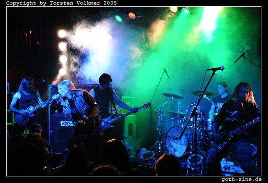 Nachdem die Zeit bis zum Beginn auch noch sinnvoll überbrückt wurde, kamen pünktlich 19.45 Uhr SuidAkra auf die Bühne. SuidAkra hatten es besonders schwer, da die doch ziemlich leere Halle äußerst schwer anzuheitzen war. Doch mit ihrer Mischung aus Death/Black-irgendwas Metal gelang es ihnen mal mehr mal weniger die Meute zu begeistern. Zumindest die eine Hälfte der Halle schien ordentlich Spaß zu haben.