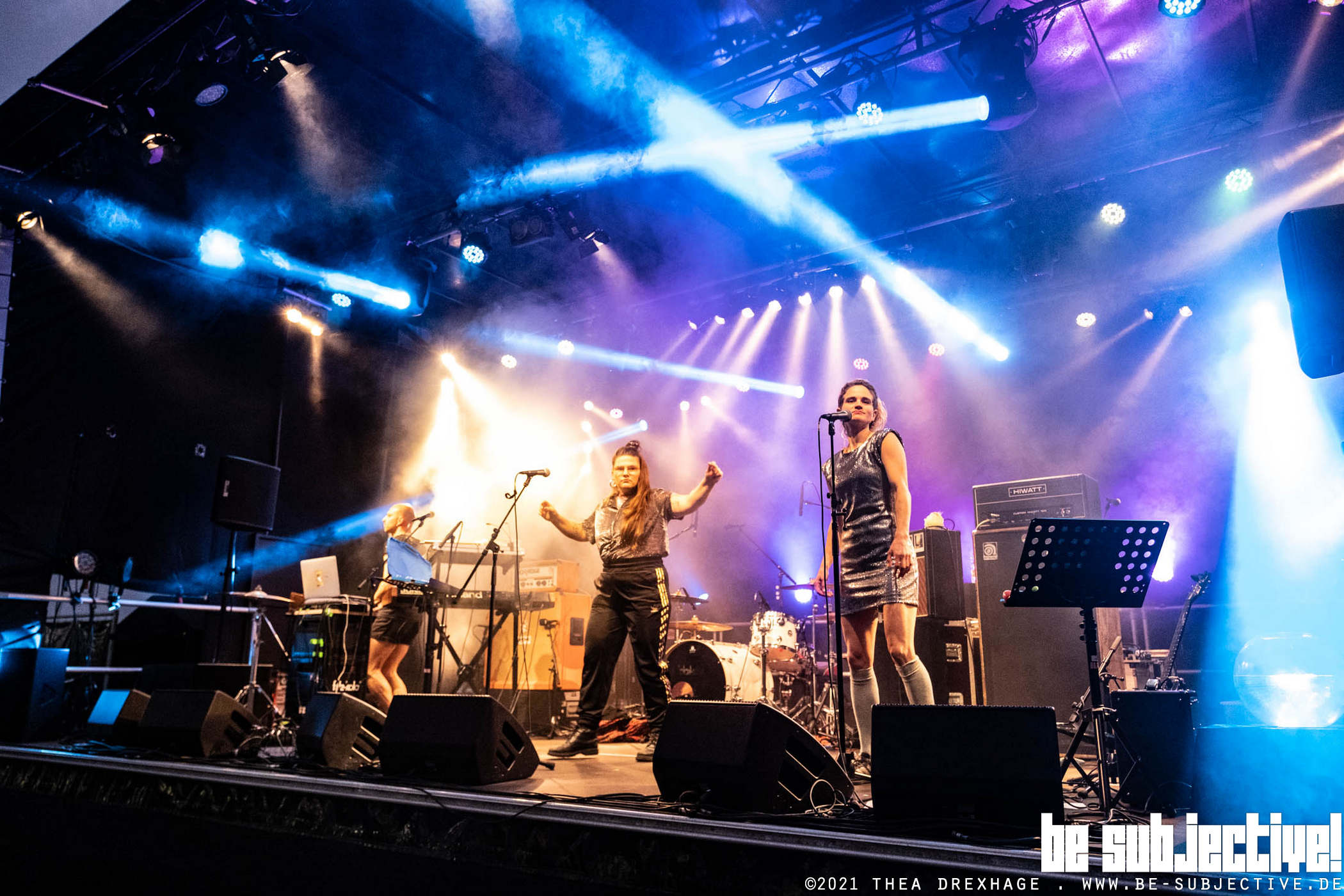 Laturb sind der brutalste Beweis, dass das New Wave und Synthpop Revival der jüngeren Vergangenheit dringend nötig war. Du willst diese drei Überschnuckis als neue beste Freund:innen haben, wenn du nur einer ihrer Liveshows beigewohnt hast. Diese sind ein wilder Ritt auf 80s Synthesizern und punkigen Gitarrenriffs, getragen von punchigen Rhythmusmaschinen und den Ausnahmestimmen der ungleichen Sängerinnen. Neben catchy hooklines werfen die zwei sich obendrein in halsbrecherische Anarchoakrobatik und zünden eine Überraschungsgranate nach der nächsten. Trash and treasures am laufenden Band, bevor uns das Bremer Trio hochemotionalisiert im Konfettiregen zurücklässt – zum Schockverlieben!